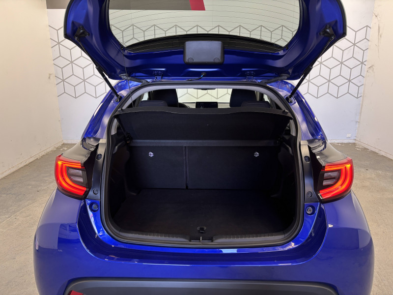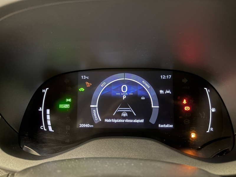 Antenne de toit aileron de requin / Ciel de toit gris clair / Compteur numérique 7" / Double plancher du coffre / Feux de croisement à LED / Rétroviseur intérieur électrochromatique / Rétroviseurs extérieurs couleur carrosserie / Sellerie tissu noir/gris / Services connectés de contrôle à distance MyToyota (inclus 4 ans) / Système d'appel d'urgence automatique "E-Call" / Système de connectivité smartphone sans fil Apple CarPlay et Android Auto / Système d'ouverture/fermeture et démarrage sans clé "Smart Entry & Start" / Système multimédia Toyota Smart Connect avec écran tactile 10,5" haute définition, Bluetooth, USB, Radio FM et DAB (digitale), 2 ports USB-C et 6 hp, Services intelligents avec Navigation connectée avec infotrafic en temps réel, mises à jour cartographiques, assistant vocal "Hey Toyota" et recherche de points d'intérêts (inclus 4 ans) / Tableau de bord moussé / Toyota T-MATE / Toyota Safety Sense Système de sécurité précollision avec détection des véhicules, piétons et cyclistes, actif également dans les intersections+Alerte de franchissement de ligne avec aide au maintien dans la file, assistant de trajectoire et détecteur de fatigue+Lecture des panneaux de signalisation avec limiteur de vitesse+Gestion automatique des feux de route+Régulateur de vitesse adaptatif intelligent+Système d'arrêt d'urgence autonome +Système d'assistance à la conduite proactive+Suppression de l'acceleration