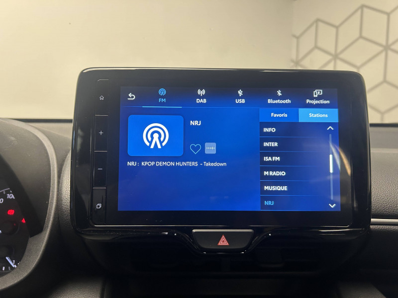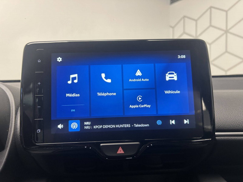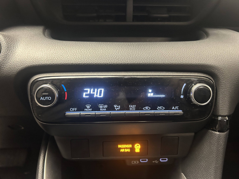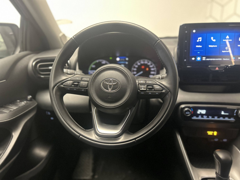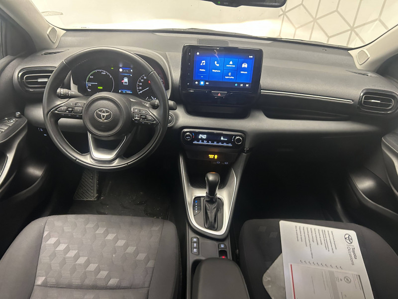 Antenne de toit aileron de requin / Ciel de toit gris clair / Double plancher du coffre / Enjoliveurs 15" / Feux de route halogènes / Rétroviseur intérieur électrochromatique / Rétroviseurs extérieurs couleur carrosserie / Services connectés standards MyToyota (inclus 10 ans) / Système audio Toyota Touch 3 écran tactile 9", radio digitale (DAB), Bluetooth, 2 ports USB-C et 6 hp / Système d'appel d'urgence automatique "E-Call" / Système de connectivité smartphone sans fil Apple CarPlay et Android Auto / Système d'ouverture/fermeture et démarrage sans clé "Smart Entry & Start" / Tableau de bord moussé / Toyota T-MATE / Toyota Safety Sense Système de sécurité précollision avec détection des véhicules, piétons et cyclistes, actif également dans les intersections+Alerte de franchissement de ligne avec aide au maintien dans la file, assistant de trajectoire et détecteur de fatigue+Lecture des panneaux de signalisation avec limiteur de vitesse+Gestion automatique des feux de route+Régulateur de vitesse adaptatif intelligent+Système d'arrêt d'urgence autonome +Système d'assistance à la conduite proactive+Suppression de l'acceleration