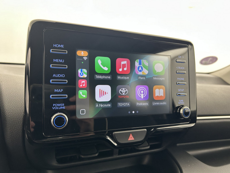 Antenne de toit aileron de requin / Ciel de toit gris clair / Double plancher du coffre / Ecran tactile 7" multifonction / Enjoliveurs 15" / Haut-parleurs x 4 / Projecteurs halogènes avec feux de jour / Rétroviseurs extérieurs couleur carrosserie / Système d'appel d'urgence automatique "E-Call" / Tableau de bord moussé / Toyota Safety Sense Système de sécurité précollision avec détection des véhicules, piétons et cyclistes, actif également dans les intersections. Alerte de franchissement de ligne avec aide au maintien dans la file, assistant de trajectoire et détecteur de fatigue, Lecture des panneaux de signalisation avec limiteur de vitesse, Gestion automatique des feux de route, Régulateur de vitesse adaptatif intelligent / Toyota Touch & App compatible avec Apple CarPlay et Android Auto / Toyota Touch: radio digitale (DAB), système de téléphonie Bluetooth et connectique auxiliaire/USB /