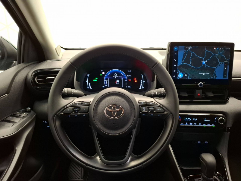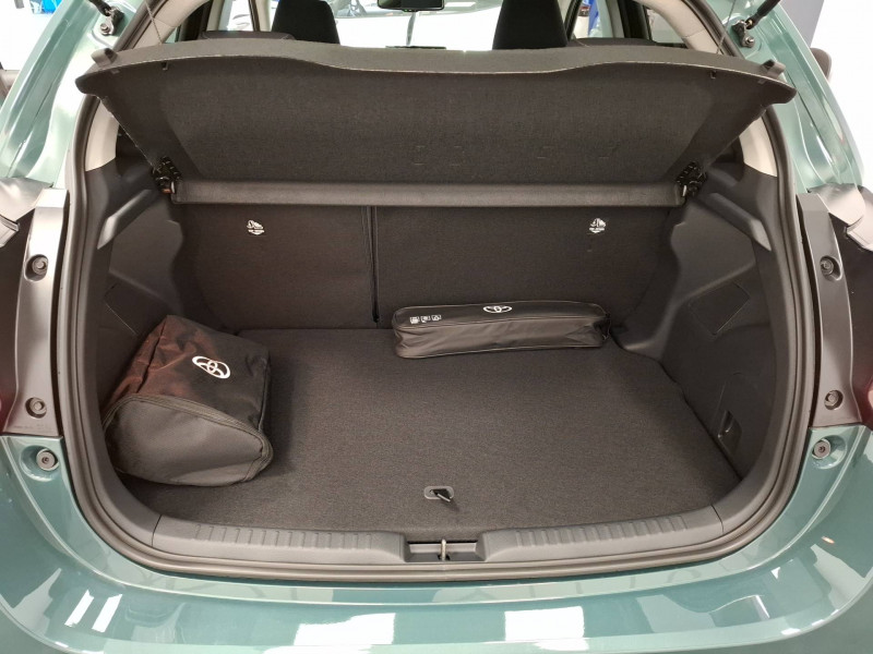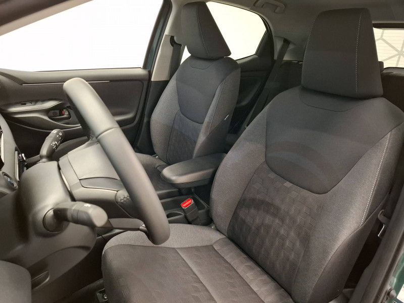 Antenne de toit aileron de requin / Boîte automatique à variation continue / Ciel de toit gris clair / Compteur numérique 7" / Contrôle de traction (TCS) / Double plancher du coffre / Electrostabilisateur programmé (ESP) / Feux de croisement à LED / Rétroviseur intérieur électrochromatique / Rétroviseurs extérieurs couleur carrosserie / Sellerie tissu noir/gris / Services connectés de contrôle à distance MyToyota (inclus 4 ans) / Système d'appel d'urgence automatique "E-Call" / Système de connectivité smartphone sans fil Apple CarPlay et Android Auto / Système d'ouverture/fermeture et démarrage sans clé "Smart Entry & Start" / Système multimédia Toyota Smart Connect avec écran tactile 10,5" haute définition, Bluetooth, USB, Radio FM et DAB (digitale), 2 ports USB-C et 6 hp, Services intelligents avec Navigation connectée avec infotrafic en temps réel, mises à jour cartographiques, assistant vocal "Hey Toyota" et recherche de points d'intérêts (inclus 4 ans) / Tableau de bord moussé / Toyota T-MATE / Toyota Safety Sense Système de sécurité précollision avec détection des véhicules, piétons et cyclistes, actif également dans les intersections+Alerte de franchissement de ligne avec aide au maintien dans la file, assistant de trajectoire et détecteur de fatigue+Lecture des panneaux de signalisation avec limiteur de vitesse+Gestion automatique des feux de route+Régulateur de vitesse adaptatif intelligent+Système d'arrêt d'urgence autonome +Système d'assistance à la conduite proactive+Suppression de l'acceleration