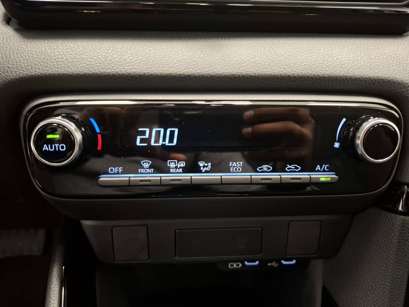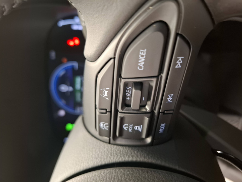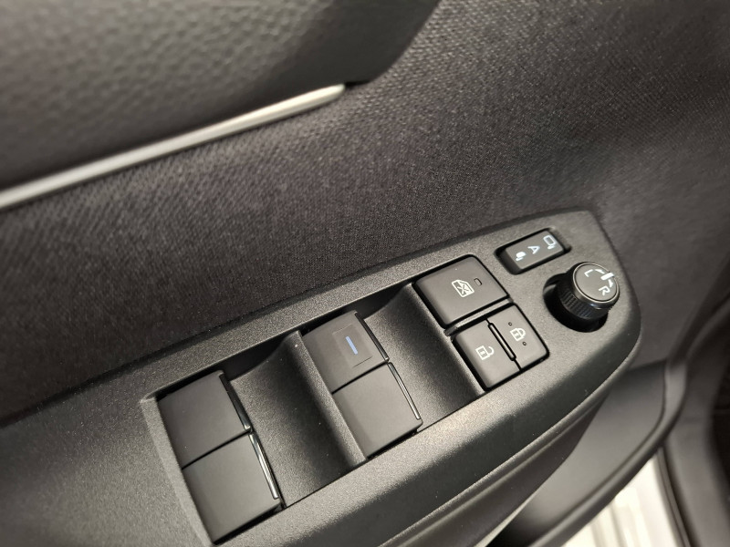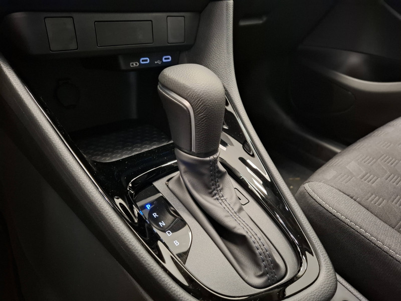 Antenne de toit aileron de requin / Assistant visuel de conduite (DMC) / Boîte automatique à variation continue / Ciel de toit gris clair / Compteur numérique 7" / Contrôle de traction (TCS) / Double plancher du coffre / Eclairage d'ambiance intérieur / Electrostabilisateur programmé (ESP) / Feux de croisement à LED / Rétroviseur intérieur électrochromatique / Rétroviseurs extérieurs couleur carrosserie / Sellerie tissu noir/gris / Services connectés de contrôle à distance MyToyota (inclus 4 ans) / Services connectés standards MyToyota (inclus 10 ans) / Système d'appel d'urgence automatique "E-Call" / Système de connectivité smartphone sans fil Apple CarPlay et Android Auto / Système d'ouverture/fermeture et démarrage sans clé "Smart Entry & Start" / Système multimédia Toyota Smart Connect avec écran tactile 10,5" haute définition, Bluetooth, USB, Radio FM et DAB (digitale), 2 ports USB-C et 6 hp, Services intelligents avec Navigation connectée avec infotrafic en temps réel, mises à jour cartographiques, assistant vocal "Hey Toyota" et recherche de points d'intérêts (inclus 4 ans) / Tableau de bord moussé / Toyota T-MATE / Toyota Safety Sense Système de sécurité précollision avec détection des véhicules, piétons et cyclistes, actif également dans les intersections+Alerte de franchissement de ligne avec aide au maintien dans la file, assistant de trajectoire et détecteur de fatigue+Lecture des panneaux de signalisation avec limiteur de vitesse+Gestion automatique des feux de route+Régulateur de vitesse adaptatif intelligent+Système d'arrêt d'urgence autonome +Système d'assistance à la conduite proactive+Suppression de l'acceleration