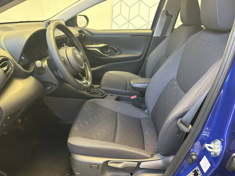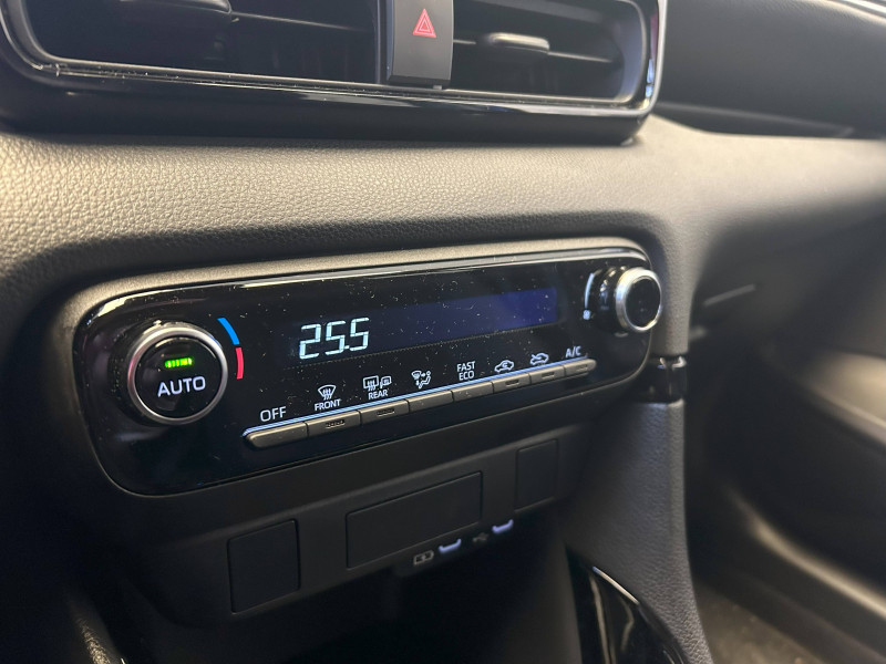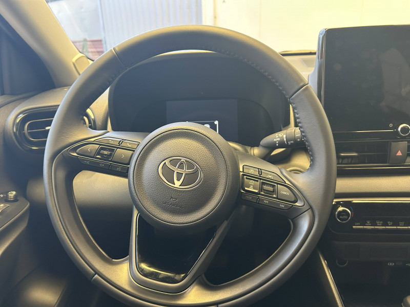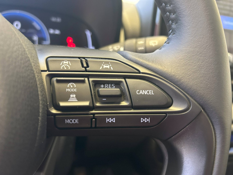 Antenne de toit aileron de requin / Boîte automatique à variation continue / Ciel de toit gris clair / Compteur numérique 7" / Contrôle de traction (TCS) / Double plancher du coffre / Electrostabilisateur programmé (ESP) / Feux de croisement à LED / Rétroviseur intérieur électrochromatique / Rétroviseurs extérieurs couleur carrosserie / Sellerie tissu noir/gris / Services connectés de contrôle à distance MyToyota (inclus 4 ans) / Système d'appel d'urgence automatique "E-Call" / Système de connectivité smartphone sans fil Apple CarPlay et Android Auto / Système d'ouverture/fermeture et démarrage sans clé "Smart Entry & Start" / Système multimédia Toyota Smart Connect avec écran tactile 10,5" haute définition, Bluetooth, USB, Radio FM et DAB (digitale), 2 ports USB-C et 6 hp, Services intelligents avec Navigation connectée avec infotrafic en temps réel, mises à jour cartographiques, assistant vocal "Hey Toyota" et recherche de points d'intérêts (inclus 4 ans) / Tableau de bord moussé / Toyota T-MATE / Toyota Safety Sense Système de sécurité précollision avec détection des véhicules, piétons et cyclistes, actif également dans les intersections+Alerte de franchissement de ligne avec aide au maintien dans la file, assistant de trajectoire et détecteur de fatigue+Lecture des panneaux de signalisation avec limiteur de vitesse+Gestion automatique des feux de route+Régulateur de vitesse adaptatif intelligent+Système d'arrêt d'urgence autonome +Système d'assistance à la conduite proactive+Suppression de l'acceleration