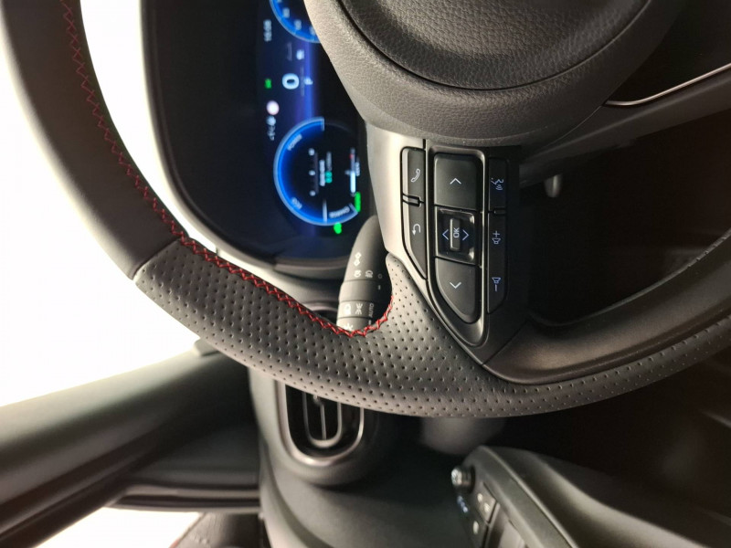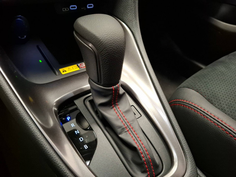 Antenne de toit aileron de requin / Assistant visuel de conduite (DMC) / Boîte automatique à variation continue / Calandre AV spécifique GR Sport / Ciel de toit noir / Clé digitale / Compteur numérique personnalisable 12,3" / Contour de vitres noir laqué / Contrôle de traction (TCS) / Diffuseur AR / Double plancher du coffre / Eclairage d'ambiance intérieur / Electrostabilisateur programmé (ESP) / Feux de croisement à LED / Insert inférieur de calandre noir / Logo GR SPORT sur le volant / Pédalier en aluminium / Peinture premium bi-ton / Purificateur d'air ionique nanoe X / Rétroviseur intérieur électrochromatique / Sellerie Premium et suédine noire perforée rouge, avec surpiqûres rouges et logo GR SPORT embossé / Services connectés de contrôle à distance MyToyota (inclus 4 ans) / Services connectés standards MyToyota (inclus 10 ans) / Siège conducteur avec support lombaire électrique / Suspensions raffermies / Système d'appel d'urgence automatique "E-Call" / Système de connectivité smartphone sans fil Apple CarPlay et Android Auto / Système d'ouverture/fermeture et démarrage sans clé "Smart Entry & Start" / Système multimédia Toyota Smart Connect avec écran tactile 10,5" haute définition, Bluetooth, USB, Radio FM et DAB (digitale), 2 ports USB-C et 6 hp, Services intelligents avec Navigation connectée avec infotrafic en temps réel, mises à jour cartographiques, assistant vocal "Hey Toyota" et recherche de points d'intérêts (inclus 4 ans) / Tableau de bord moussé / Toit noir / Toyota T-MATE / Systemes d'aide à la conduite et au stationnement Avertisseur de circulation AR, Avertisseur d'angles morts, Aide à la sortie sécurisée / Toyota T-MATE / Toyota Safety Sense Système de sécurité précollision avec détection des véhicules, piétons et cyclistes, actif également dans les intersections+Alerte de franchissement de ligne avec aide au maintien dans la file, assistant de trajectoire et détecteur de fatigue+Lecture des panneaux de signalisation avec limiteur de vitesse+Gestion automatique des feux de route+Régulateur de vitesse adaptatif intelligent+Système d'arrêt d'urgence autonome +Système d'assistance à la conduite proactive+Suppression de l'acceleration / Volant chauffant / Volant cuir avec surpiqûres rouges