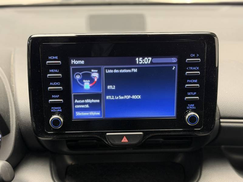 Antenne de toit aileron de requin / Ciel de toit gris clair / Double plancher du coffre / Ecran tactile 7" multifonction / Enjoliveurs 15" / Feux AR à LED (hors clignotants) / Feux de route halogènes / Haut-parleurs x 4 / Peinture Blanc Pur / Rétroviseurs extérieurs couleur carrosserie / Système d'appel d'urgence automatique "E-Call" / Tableau de bord moussé / Toyota Safety Sense Système de sécurité précollision avec détection des véhicules, piétons et cyclistes, actif également dans les intersections. Alerte de franchissement de ligne avec aide au maintien dans la file, assistant de trajectoire et détecteur de fatigue, Lecture des panneaux de signalisation avec limiteur de vitesse, Gestion automatique des feux de route, Régulateur de vitesse adaptatif intelligent / Toyota Touch & App compatible avec Apple CarPlay et Android Auto / Toyota Touch: radio digitale (DAB), système de téléphonie Bluetooth et connectique auxiliaire/USB