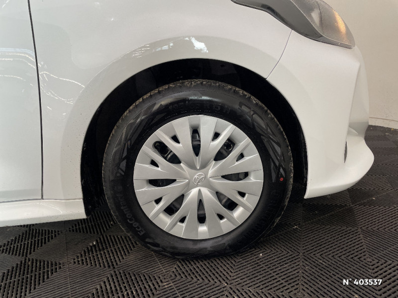 Système d'appel d'urgence automatique "E-Call" / Peinture Blanc Pur / Rétroviseurs extérieurs couleur carrosserie / Feux de route halogènes / Feux AR à LED (hors clignotants) / Enjoliveurs 15" / Ecran tactile 7" multifonction / Double plancher du coffre / Ciel de toit gris clair / Antenne de toit aileron de requin / Toyota Touch: radio digitale (DAB), système de téléphonie Bluetooth et connectique auxiliaire/USB / Toyota Touch & App compatible avec Apple CarPlay et Android Auto / Toyota Safety Sense Système de sécurité précollision avec détection des véhicules, piétons et cyclistes, actif également dans les intersections. Alerte de franchissement de ligne avec aide au maintien dans la file, assistant de trajectoire et détecteur de fatigue, Lecture des panneaux de signalisation avec limiteur de vitesse, Gestion automatique des feux de route, Régulateur de vitesse adaptatif intelligent / Tableau de bord moussé / Haut-parleurs x 4
