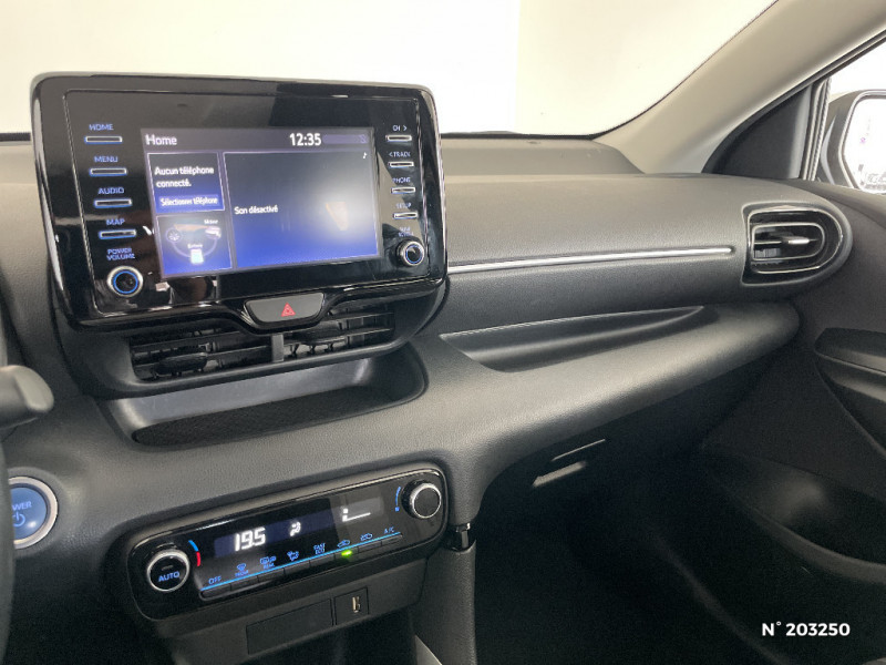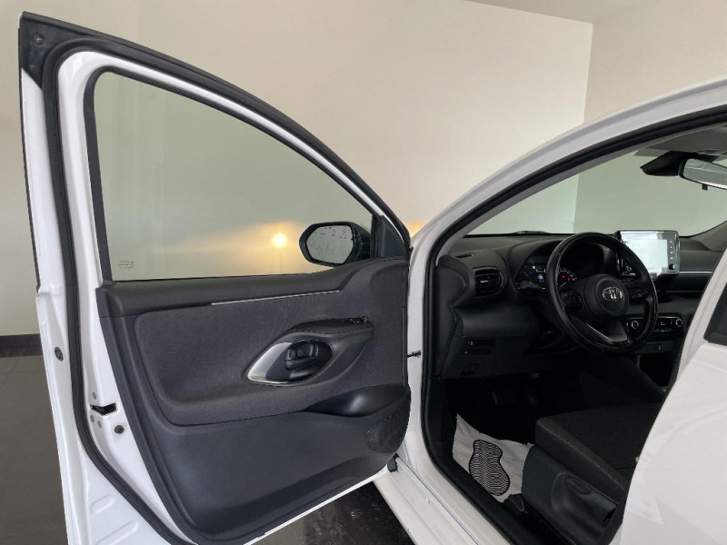 Antenne de toit aileron de requin / Assistant visuel de conduite (DMC) / Boîte automatique à variation continue / Ciel de toit gris clair / Contrôle de traction (TCS) / Double plancher du coffre / Electrostabilisateur programmé (ESP) / Enjoliveurs 15" / Feux de route halogènes / Rétroviseur intérieur électrochromatique / Rétroviseurs extérieurs couleur carrosserie / Services connectés standards MyToyota (inclus 10 ans) / Système d'appel d'urgence automatique "E-Call" / Système de connectivité smartphone sans fil Apple CarPlay et Android Auto / Système d'ouverture/fermeture et démarrage sans clé "Smart Entry & Start" / Système multimédia Toyota Touch 3 - Ecran couleur tactile 9" haute définition - Bluetooth, USB, Radio FM et DAB (digitale) - 2 ports USB-C et 6 haut-parleurs / Tableau de bord moussé / Toyota T-MATE / Toyota Safety Sense Système de sécurité précollision avec détection des véhicules, piétons et cyclistes, actif également dans les intersections+Alerte de franchissement de ligne avec aide au maintien dans la file, assistant de trajectoire et détecteur de fatigue+Lecture des panneaux de signalisation avec limiteur de vitesse+Gestion automatique des feux de route+Régulateur de vitesse adaptatif intelligent+Système d'arrêt d'urgence autonome +Système d'assistance à la conduite proactive+Suppression de l'acceleration