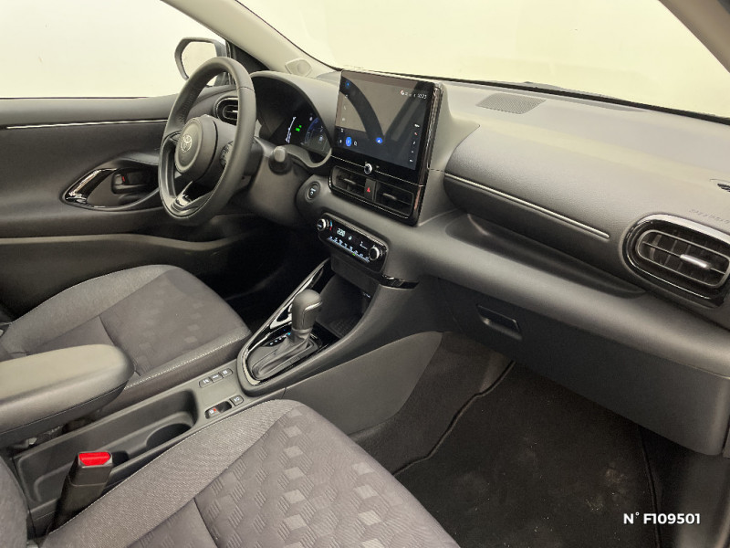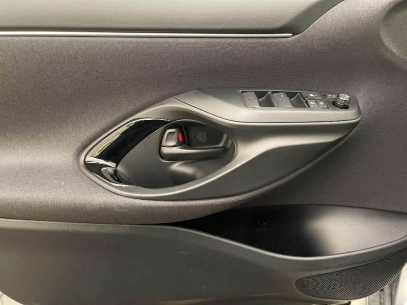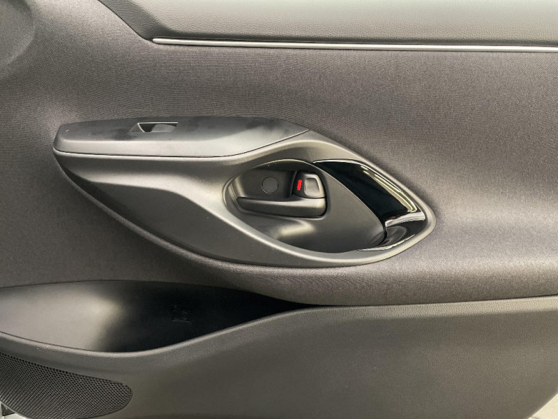 Antenne de toit aileron de requin / Assistant visuel de conduite (DMC) / Boîte automatique à variation continue / Ciel de toit gris clair / Compteur numérique 7" / Contrôle de traction (TCS) / Double plancher du coffre / Eclairage d'ambiance intérieur / Electrostabilisateur programmé (ESP) / Feux de croisement à LED / Rétroviseur intérieur électrochromatique / Rétroviseurs extérieurs couleur carrosserie / Sellerie tissu noir/gris / Services connectés de contrôle à distance MyToyota (inclus 4 ans) / Services connectés standards MyToyota (inclus 10 ans) / Système d'appel d'urgence automatique "E-Call" / Système de connectivité smartphone sans fil Apple CarPlay et Android Auto / Système d'ouverture/fermeture et démarrage sans clé "Smart Entry & Start" / Système multimédia Toyota Smart Connect avec écran tactile 10,5" haute définition, Bluetooth, USB, Radio FM et DAB (digitale), 2 ports USB-C et 6 hp, Services intelligents avec Navigation connectée avec infotrafic en temps réel, mises à jour cartographiques, assistant vocal "Hey Toyota" et recherche de points d¿intérêts (inclus 4 ans) / Tableau de bord moussé / Toyota T-MATE / Toyota Safety Sense Système de sécurité précollision avec détection des véhicules, piétons et cyclistes, actif également dans les intersections+Alerte de franchissement de ligne avec aide au maintien dans la file, assistant de trajectoire et détecteur de fatigue+Lecture des panneaux de signalisation avec limiteur de vitesse+Gestion automatique des feux de route+Régulateur de vitesse adaptatif intelligent+Système d'arrêt d'urgence autonome +Système d'assistance à la conduite proactive+Suppression de l'acceleration