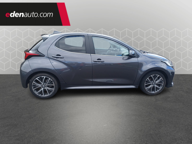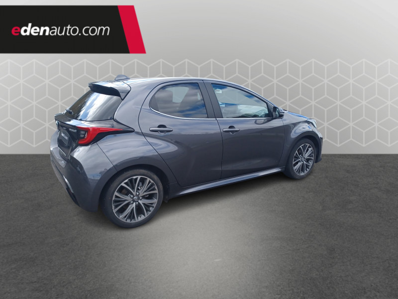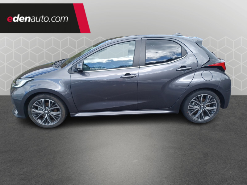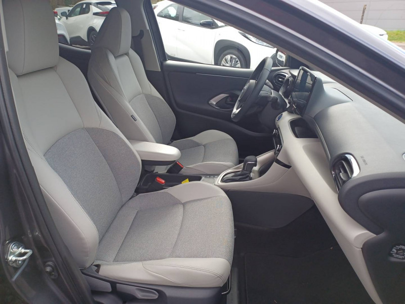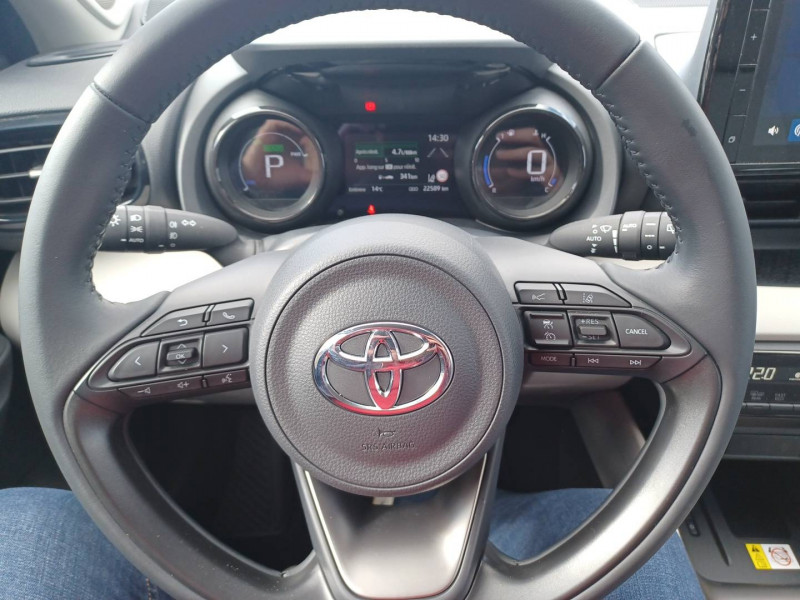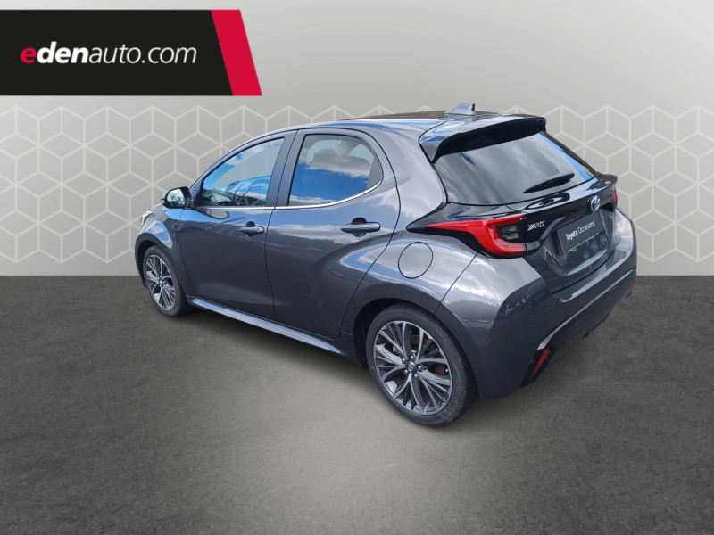 Antenne de toit aileron de requin / Calandre chromée / Ciel de toit gris clair / Contour de vitres chromé / Double plancher du coffre / Eclairage d'ambiance intérieur / Ecran TFT 4,2" / Feux AR à LED (hors clignotants) / Haut-parleurs x 6 / Jantes alliage 17" Sakura usinées / Purificateur d'air ionique nanoe X / Réglage lombaire / Rétroviseur intérieur électrochromatique / Rétroviseurs extérieurs couleur carrosserie / Sellerie Cuir Noir - type Sport / Système d'appel d'urgence automatique "E-Call" / Tableau de bord moussé / Toyota Safety Sense Système de sécurité précollision avec détection des véhicules, piétons et cyclistes, actif également dans les intersections. Alerte de franchissement de ligne avec aide au maintien dans la file, assistant de trajectoire et détecteur de fatigue, Lecture des panneaux de signalisation avec limiteur de vitesse, Gestion automatique des feux de route, Régulateur de vitesse adaptatif intelligent / Toyota Smart Connect avec écran couleur tactile 9" multifonction, 6 HP, navigation connectée et connectivité smartphone sans fil compatible AppleCar Play et Android Auto, et 4 ans de mises à jour cartographiques et de services connectés inclus