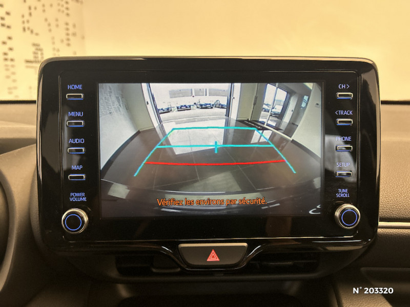 Système d'appel d'urgence automatique "E-Call" / Toyota Safety Sense Système de sécurité précollision avec détection des véhicules, piétons et cyclistes, actif également dans les intersections. Alerte de franchissement de ligne avec aide au maintien dans la file, assistant de trajectoire et détecteur de fatigue, Lecture des panneaux de signalisation avec limiteur de vitesse, Gestion automatique des feux de route, Régulateur de vitesse adaptatif intelligent / Toyota Touch & App compatible avec Apple CarPlay et Android Auto / Toyota Touch: radio digitale (DAB), système de téléphonie Bluetooth et connectique auxiliaire/USB / Rétroviseur intérieur électrochromatique / Antenne de toit aileron de requin / Ciel de toit gris clair / Double plancher du coffre / Ecran TFT 4,2" / Feux AR à LED (hors clignotants) / Feux AV/AR avec signature lumineuse Full LED / Rétroviseurs extérieurs couleur carrosserie / Peinture Blanc Pur / Haut-parleurs x 4 / Tableau de bord moussé