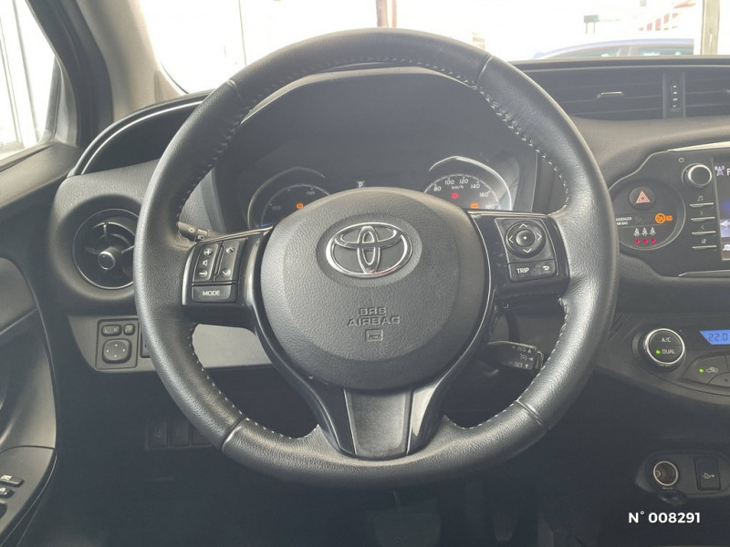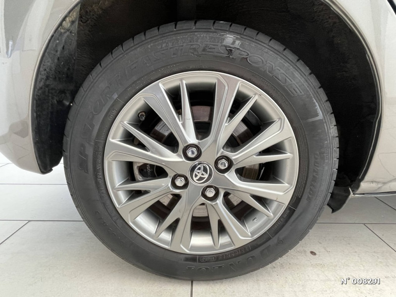 Fermeture centralisée des portes avec télécommande / Kit de réparation anti-crevaison / Volant avec insert noir brillant / 7 Airbags (frontaux, lateraux, rideaux et un protège-genoux conducteur) / Double plancher du coffre / Aumônière de siège côté passager / Ecran TFT couleur 4,2" / Frein AR à disques / Cerclages des aérateurs et branches volant Noirs laqués / Finition Chrome satiné (haut-parleurs, commandes de climatisation, entourage de levier de vitesses et inserts Toyota Touch 2) / Boîte automatique E-CVT / Indicateur de perte de pression des pneus / Sellerie tissu Mabillon / Baguette de coffre en Chrome satiné / Calandre supérieure avec insert Chrome satiné / Carrosserie monoton / Système de contrôle de stabilité (VSC) + Système de contrôle de motricité (TRC) / Calandre inférieure Noire laquée / Diffuseur AR Noir / ABS, EBD et BA / "ATTENTION" - Equipements non communiqués / Toyota Touch 2 / Peinture Blanc Pur / Jantes alliage 15" "Hokkaido" / Follow me home (feux AV à extinction différée) / Poignées de portes et rétroviseurs extérieurs couleur carrosserie / Volant, frein à main et pommeau de levier de vitesses gainés cuir perforé avec surpiqûres gris / Projecteurs halogènes avec feux de jour / Planche de bord "Soft touch" / Toyota Safety Sense Système de sécurité précollision avec détection des piétons, Alerte de franchissement de ligne et détecteur de fatigue, gestion automatique des feux de route, lecture des panneaux de signalisation, régulateur de vitesse adaptatif.