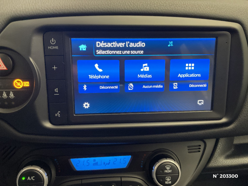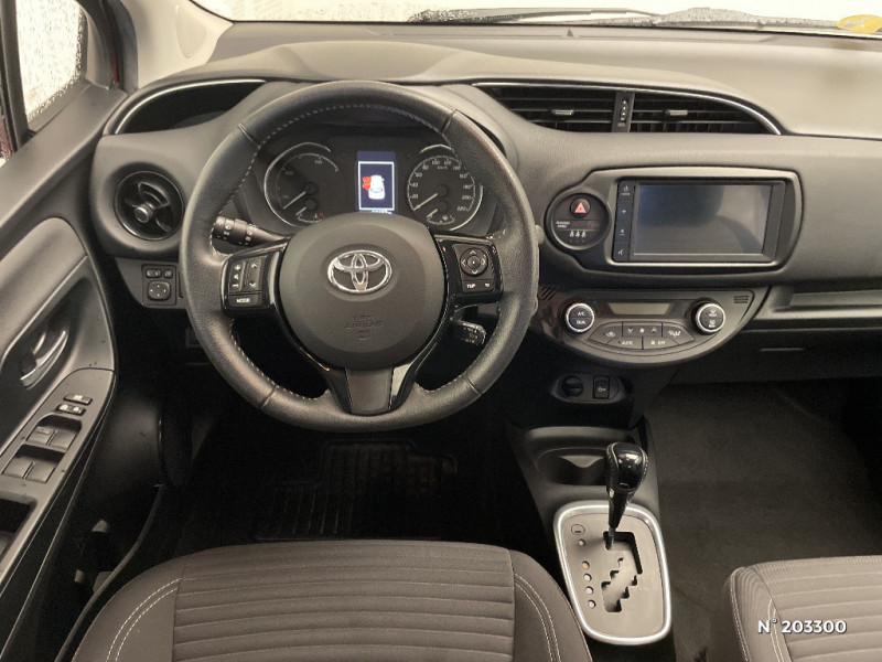 Pommeau de levier de vitesse gainé cuir / Planche de bord "Soft touch" / Rétroviseurs extérieurs Noirs métallisé / Seuils des portes aluminium siglés Yaris / Système de démarrage à clé / Système Toyota Touch 2 (écran tactile 7", système de téléphonie Bluetooth, compatibilité iPod) / Tapis de sol en velours / Toyota Safety Sense Alerte active de franchissement de ligne, Allumage automatique des phares, freinage d'urgence anticollision / 7 Airbags (frontaux, lateraux, rideaux et un protège-genoux conducteur) / Ciel de toit gris clair / Double plancher du coffre / Follow me home (feux AV à extinction différée) / Frein AR à disques / Inserts latéraux noirs laqué / Indicateur de perte de pression des pneus / Kit de réparation anti-crevaison / Ordinateur de bord avec écran TFT couleur 4.2" multifonctions / Ouverture/fermeture centralisée à distance