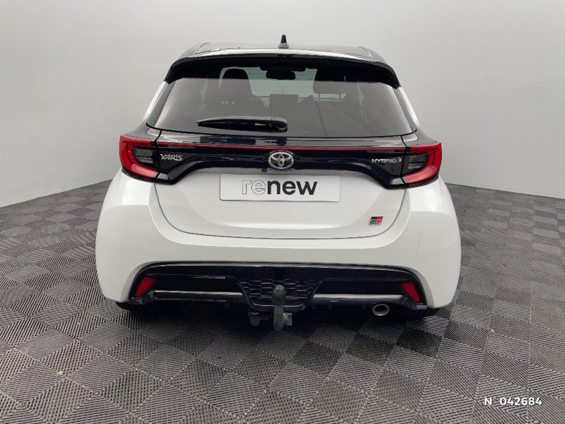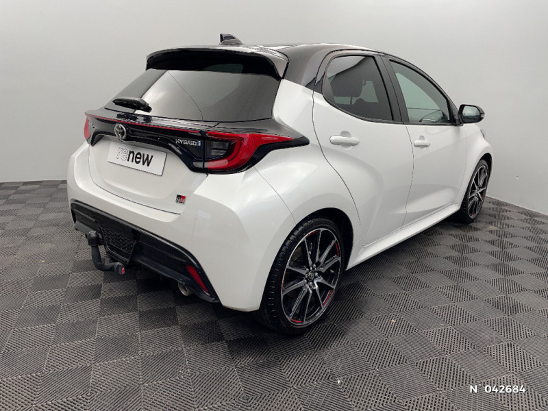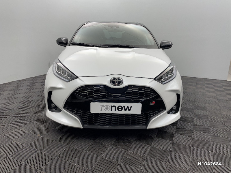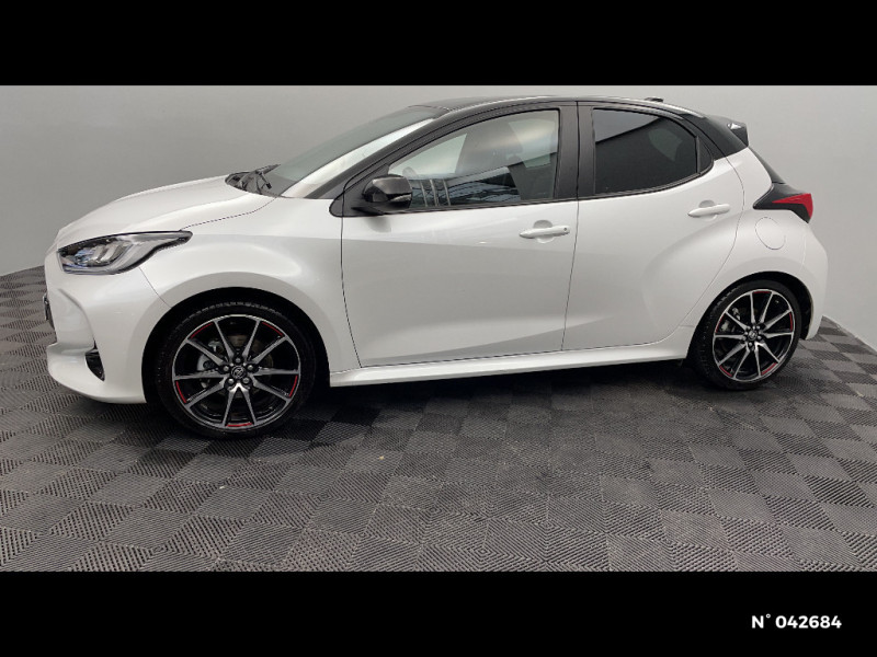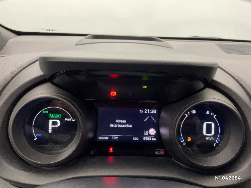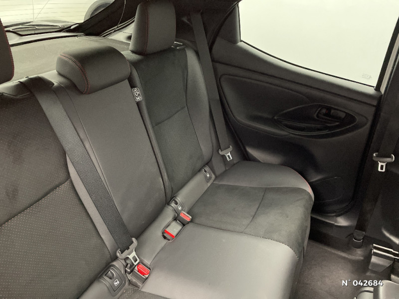 Tableau de bord moussé / Double plancher du coffre / Peinture Blanc Pur / Ciel de toit Noir / Antenne de toit aileron de requin / Système d'appel d'urgence automatique e-Call / Contour de vitres noir / Calandre noir laqué / Ecran TFT 4,2" / Feux AV/AR avec signature lumineuse Full LED / Eclairage d'ambiance intérieur / Sellerie mi-cuir Noir - type Sport / Toyota Safety Sense Système de sécurité précollision avec détection des véhicules, piétons et cyclistes, actif également dans les intersections. Alerte de franchissement de ligne avec aide au maintien dans la file, assistant de trajectoire et détecteur de fatigue, Lecture des panneaux de signalisation avec limiteur de vitesse, Gestion automatique des feux de route, Régulateur de vitesse adaptatif intelligent allant jusqu?à l?arrêt / Haut-parleurs x 6 / Toyota Touch: radio digitale (DAB), système de téléphonie Bluetooth et connectique auxiliaire/USB / Toyota Touch & App compatible avec Apple CarPlay et Android Auto / Jantes alliage 17" Toeda usinées / Sellerie mi-cuir Noir - type Sport avec surpiqures rouges / Feux AR à LED (hors clignotants) / Volant cuir avec surpiqures rouges / Purificateur d'air ionique nanoe X / Peinture bi-ton Gris Chrome/Toit Noir / Diffuseur AR / Toyota Smart Connect : Ecran couleur tactile 8" haute définition, Connectivité smartphone Apple CarPlay sans fil, Navigation connectée avec infotrafic en temps réel et Smart Parking, Reconnaissance vocale avancée, 4 ans de mises à jour cartographiques et services connectés inclus / Rétroviseur intérieur électrochromatique
