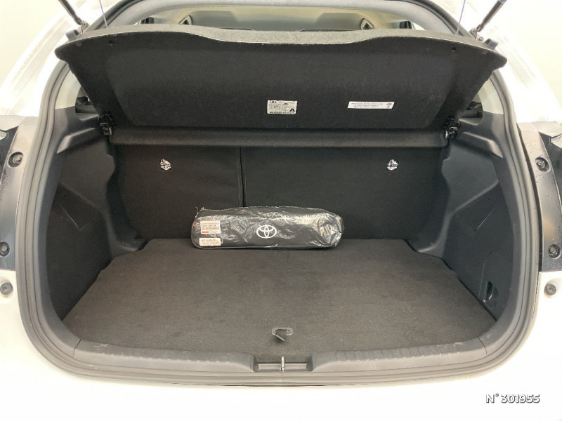 Système d'appel d'urgence automatique "E-Call" / Tableau de bord moussé / Toyota Safety Sense Système de sécurité précollision avec détection des véhicules, piétons et cyclistes, actif également dans les intersections. Alerte de franchissement de ligne avec aide au maintien dans la file, assistant de trajectoire et détecteur de fatigue, Lecture des panneaux de signalisation avec limiteur de vitesse, Gestion automatique des feux de route, Régulateur de vitesse adaptatif intelligent / Toyota Touch & App compatible avec Apple CarPlay et Android Auto / Toyota Touch & Go : système de navigation à écran couleur tactile avec reconnaissance vocale, et 3 ans de mises à jour cartographiques et de services connectés inclus / Toyota Touch: radio digitale (DAB), système de téléphonie Bluetooth et connectique auxiliaire/USB / Antenne de toit aileron de requin / Ciel de toit gris clair / Double plancher du coffre / Ecran tactile 7" multifonction / Enjoliveurs 15" / Feux AR à LED (hors clignotants) / Feux de route halogènes / Haut-parleurs x 4 / Peinture Blanc Pur / Programme "Beyond Zero Academy" / Projecteurs halogènes avec feux de jour / Rétroviseurs extérieurs couleur carrosserie