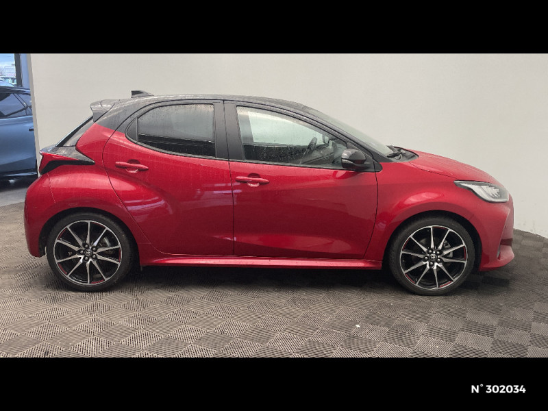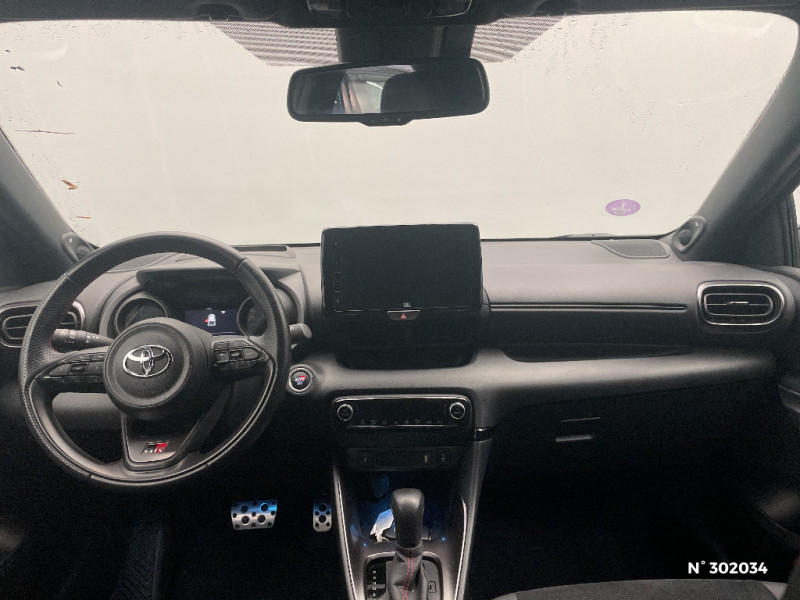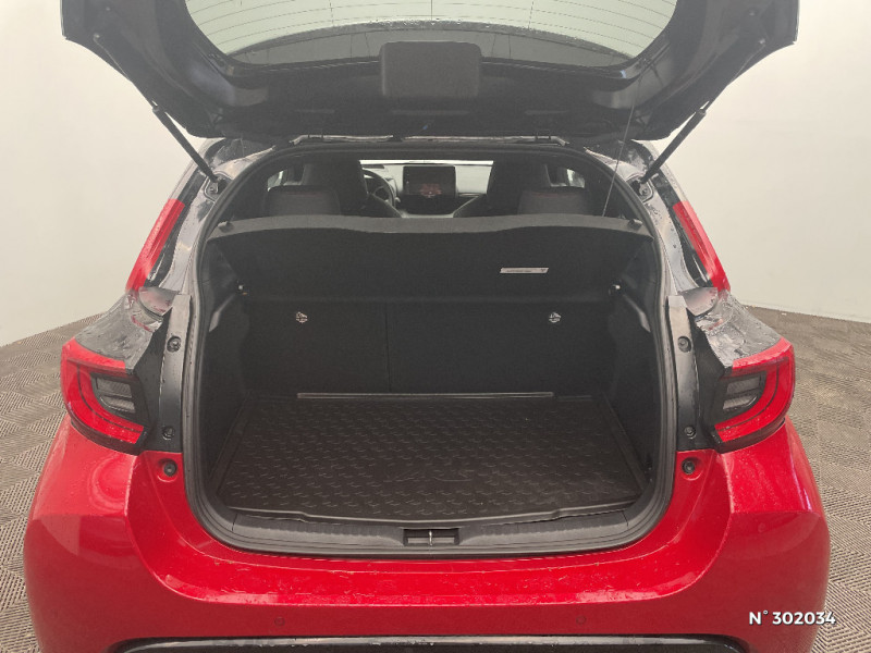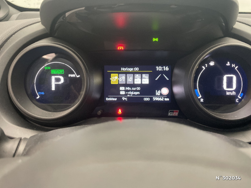 Antenne de toit aileron de requin / Calandre noir laqué / Ciel de toit noir / Contour de vitres noir / Diffuseur AR / Double plancher du coffre / Peinture bi-ton Gris Chrome/Toit Noir / Peinture Blanc Pur / Purificateur d'air ionique nanoe X / Rétroviseur intérieur électrochromatique / Sellerie mi-cuir Noir - type Sport / Sellerie mi-cuir Noir - type Sport avec surpiqûres rouges / Système d'appel d'urgence automatique "E-Call" / Tableau de bord moussé / Toyota Safety Sense Système de sécurité précollision avec détection des véhicules, piétons et cyclistes, actif également dans les intersections. Alerte de franchissement de ligne avec aide au maintien dans la file, assistant de trajectoire et détecteur de fatigue, Lecture des panneaux de signalisation avec limiteur de vitesse, Gestion automatique des feux de route, Régulateur de vitesse adaptatif intelligent / Toyota Smart Connect avec écran couleur tactile 9" multifonction, 6 HP, navigation connectée et connectivité smartphone sans fil compatible AppleCar Play et Android Auto, et 4 ans de mises à jour cartographiques et de services connectés inclus / Toyota Touch & App compatible avec Apple CarPlay et Android Auto / Toyota Touch: radio digitale (DAB), système de téléphonie Bluetooth et connectique auxiliaire/USB / Volant cuir avec surpiqûres rouges / Eclairage d'ambiance intérieur / Ecran TFT 4,2" / Ecrous antivol / Feux AR à LED (hors clignotants) / Feux AV/AR avec signature lumineuse Full LED / Haut-parleurs x 6 / Jantes alliage 17" Toeda usinées