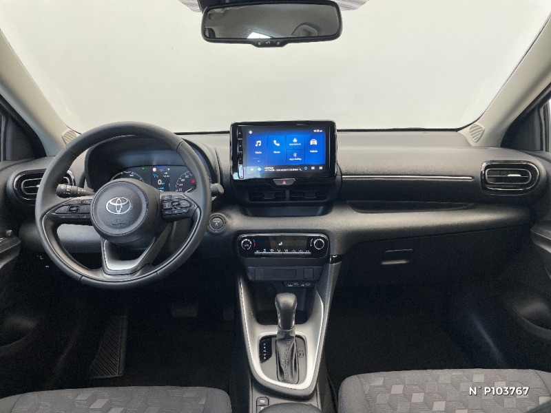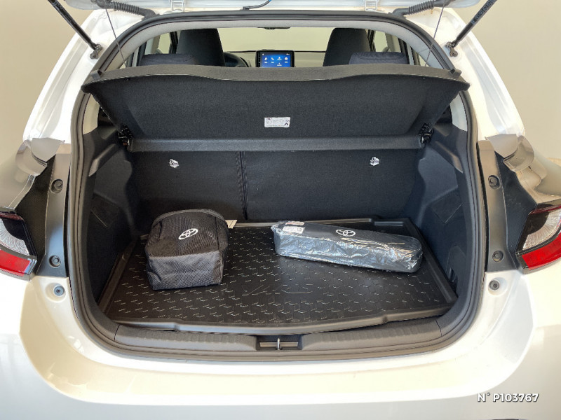 Toyota T-MATE / Toyota Safety Sense Système de sécurité précollision avec détection des véhicules, piétons et cyclistes, actif également dans les intersections+Alerte de franchissement de ligne avec aide au maintien dans la file, assistant de trajectoire et détecteur de fatigue+Lecture des panneaux de signalisation avec limiteur de vitesse+Gestion automatique des feux de route+Régulateur de vitesse adaptatif intelligent+Système d'arrêt d'urgence autonome +Système d'assistance à la conduite proactive+Suppression de l'acceleration / Services connectés standards MyToyota (inclus 10 ans) / Siège conducteur avec support lombaire électrique / Système d'appel d'urgence automatique "E-Call" / Système de connectivité smartphone sans fil Apple CarPlay et Android Auto / Système d'ouverture/fermeture et démarrage sans clé "Smart Entry & Start" / Système multimédia Toyota Touch 3 - Ecran couleur tactile 9" haute définition - Bluetooth, USB, Radio FM et DAB (digitale) - 2 ports USB-C et 6 haut-parleurs / Tableau de bord moussé / Antenne de toit aileron de requin / Assistant visuel de conduite (DMC) / Boîte automatique à variation continue / Ciel de toit gris clair / Contrôle de traction (TCS) / Double plancher du coffre / Electrostabilisateur programmé (ESP) / Enjoliveurs 15" / Feux de route halogènes / Programme "Toyota Experience" / Rétroviseur intérieur électrochromatique / Rétroviseurs extérieurs couleur carrosserie