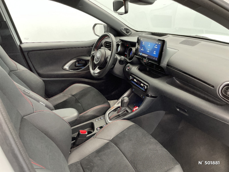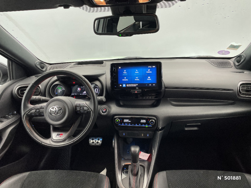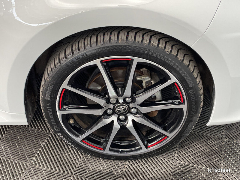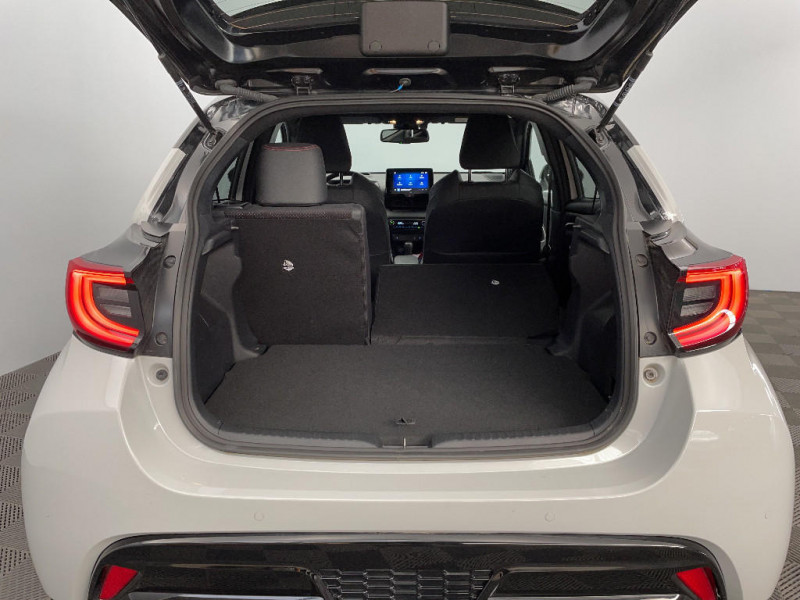 Calandre noir laqué / Double plancher du coffre / Ecran TFT 4,2" / Feux AV/AR avec signature lumineuse Full LED / Peinture bi-ton Gris Chrome/Toit Noir / Purificateur d'air ionique nanoe X / Rétroviseur intérieur électrochromatique / Toyota Safety Sense Système de sécurité précollision avec détection des véhicules, piétons et cyclistes, actif également dans les intersections. Alerte de franchissement de ligne avec aide au maintien dans la file, assistant de trajectoire et détecteur de fatigue, Lecture des panneaux de signalisation avec limiteur de vitesse, Gestion automatique des feux de route, Régulateur de vitesse adaptatif intelligent / Toyota Smart Connect avec écran couleur tactile 9" multifonction, 6 HP, navigation connectée et connectivité smartphone sans fil compatible AppleCar Play et Android Auto, et 4 ans de mises à jour cartographiques et de services connectés inclus / Toyota Touch & App compatible avec Apple CarPlay et Android Auto / Volant cuir avec surpiqûres rouges