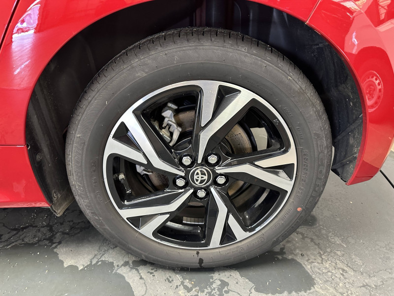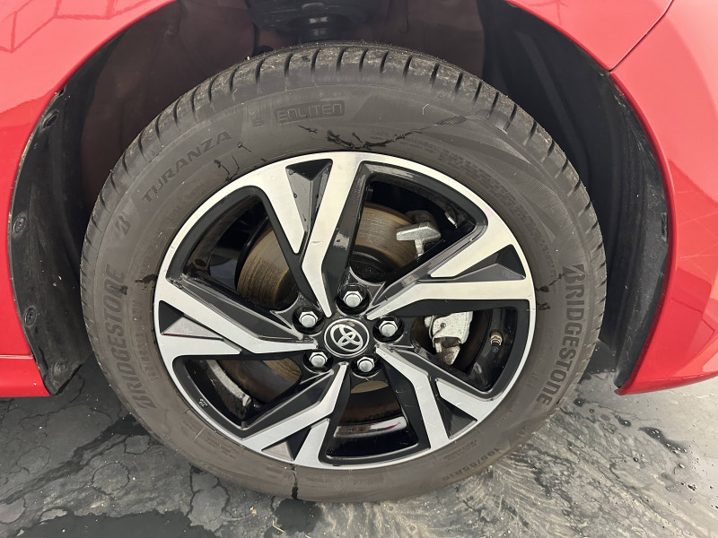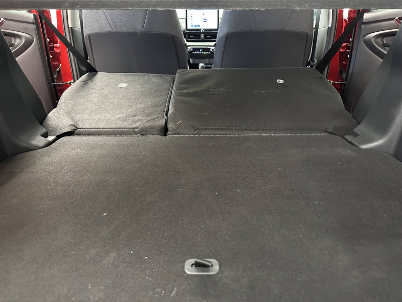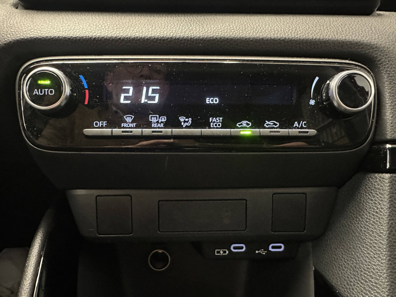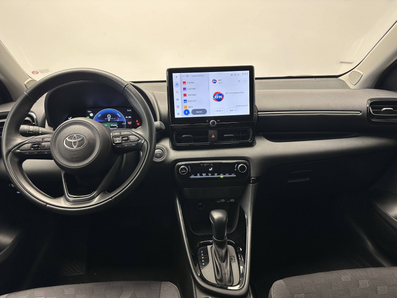 Antenne de toit aileron de requin / Ciel de toit gris clair / Compteur numérique 7" / Double plancher du coffre / Feux de croisement à LED / Rétroviseur intérieur électrochromatique / Rétroviseurs extérieurs couleur carrosserie / Sellerie tissu noir/gris / Services connectés de contrôle à distance MyToyota (inclus 4 ans) / Système d'appel d'urgence automatique "E-Call" / Système de connectivité smartphone sans fil Apple CarPlay et Android Auto / Système d'ouverture/fermeture et démarrage sans clé "Smart Entry & Start" / Système multimédia Toyota Smart Connect avec écran tactile 10,5" haute définition, Bluetooth, USB, Radio FM et DAB (digitale), 2 ports USB-C et 6 hp, Services intelligents avec Navigation connectée avec infotrafic en temps réel, mises à jour cartographiques, assistant vocal "Hey Toyota" et recherche de points d'intérêts (inclus 4 ans) / Tableau de bord moussé / Toyota T-MATE / Toyota Safety Sense Système de sécurité précollision avec détection des véhicules, piétons et cyclistes, actif également dans les intersections+Alerte de franchissement de ligne avec aide au maintien dans la file, assistant de trajectoire et détecteur de fatigue+Lecture des panneaux de signalisation avec limiteur de vitesse+Gestion automatique des feux de route+Régulateur de vitesse adaptatif intelligent+Système d'arrêt d'urgence autonome +Système d'assistance à la conduite proactive+Suppression de l'acceleration