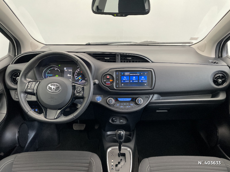 7 Airbags (frontaux, lateraux, rideaux et un protège-genoux conducteur) / Planche de bord "Soft touch" / Ciel de toit gris clair / Double plancher du coffre / Follow me home (feux AV à extinction différée) / Frein AR à disques / Indicateur de perte de pression des pneus / Inserts latéraux noirs laqué / Kit de réparation anti-crevaison / Ordinateur de bord avec écran TFT couleur 4.2" multifonctions / Ouverture/fermeture centralisée à distance / Pommeau de levier de vitesse gainé cuir / Rétroviseurs extérieurs Noirs métallisé / Seuils des portes aluminium siglés Yaris / Système de démarrage à clé / Système Toyota Touch 2 (écran tactile 7", système de téléphonie Bluetooth, compatibilité iPod) / Tapis de sol en velours / Toyota Safety Sense Alerte active de franchissement de ligne, Allumage automatique des phares, freinage d'urgence anticollision