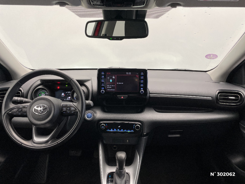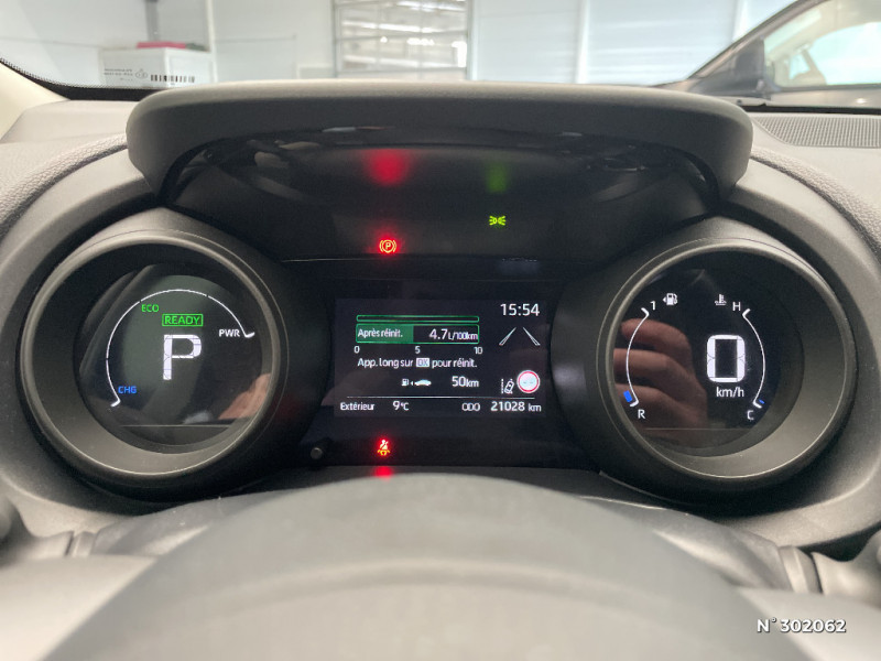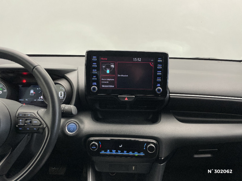 Ciel de toit gris clair / Compteur numérique 7" / Contrôle de traction (TCS) / Double plancher du coffre / Eclairage d'ambiance intérieur / Electrostabilisateur programmé (ESP) / Feux de croisement à LED / Rétroviseur intérieur électrochromatique / Rétroviseurs extérieurs couleur carrosserie / Sellerie tissu noir/gris / Services connectés de contrôle à distance MyToyota (inclus 4 ans) / Services connectés standards MyToyota (inclus 10 ans) / Système d'appel d'urgence automatique "E-Call" / Système de connectivité smartphone sans fil Apple CarPlay et Android Auto / Système d'ouverture/fermeture et démarrage sans clé "Smart Entry & Start" / Système multimédia Toyota Smart Connect avec écran tactile 10,5" haute définition, Bluetooth, USB, Radio FM et DAB (digitale), 2 ports USB-C et 6 hp, Services intelligents avec Navigation connectée avec infotrafic en temps réel, mises à jour cartographiques, assistant vocal "Hey Toyota" et recherche de points d¿intérêts (inclus 4 ans) / Tableau de bord moussé / Toyota T-MATE / Toyota Safety Sense Système de sécurité précollision avec détection des véhicules, piétons et cyclistes, actif également dans les intersections+Alerte de franchissement de ligne avec aide au maintien dans la file, assistant de trajectoire et détecteur de fatigue+Lecture des panneaux de signalisation avec limiteur de vitesse+Gestion automatique des feux de route+Régulateur de vitesse adaptatif intelligent+Système d'arrêt d'urgence autonome +Système d'assistance à la conduite proactive+Suppression de l'acceleration / Antenne de toit aileron de requin / Assistant visuel de conduite (DMC) / Boîte automatique à variation continue