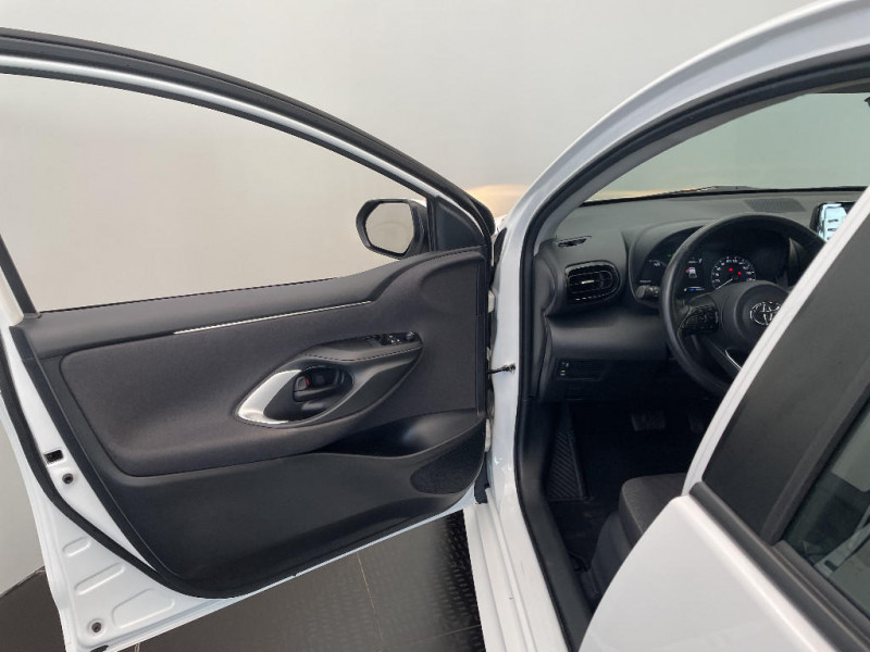 Antenne de toit aileron de requin / Ciel de toit gris clair / Double plancher du coffre / Ecran tactile 7" multifonction / Enjoliveurs 15" / Feux AR à LED (hors clignotants) / Feux de route halogènes / Haut-parleurs x 4 / Peinture Blanc Pur / Programme "Beyond Zero Academy" / Projecteurs halogènes avec feux de jour / Rétroviseurs extérieurs couleur carrosserie / Système d'appel d'urgence automatique "E-Call" / Tableau de bord moussé / Toyota Safety Sense Système de sécurité précollision avec détection des véhicules, piétons et cyclistes, actif également dans les intersections. Alerte de franchissement de ligne avec aide au maintien dans la file, assistant de trajectoire et détecteur de fatigue, Lecture des panneaux de signalisation avec limiteur de vitesse, Gestion automatique des feux de route, Régulateur de vitesse adaptatif intelligent / Toyota Touch & App compatible avec Apple CarPlay et Android Auto / Toyota Touch & Go : système de navigation à écran couleur tactile avec reconnaissance vocale, et 3 ans de mises à jour cartographiques et de services connectés inclus / Toyota Touch: radio digitale (DAB), système de téléphonie Bluetooth et connectique auxiliaire/USB