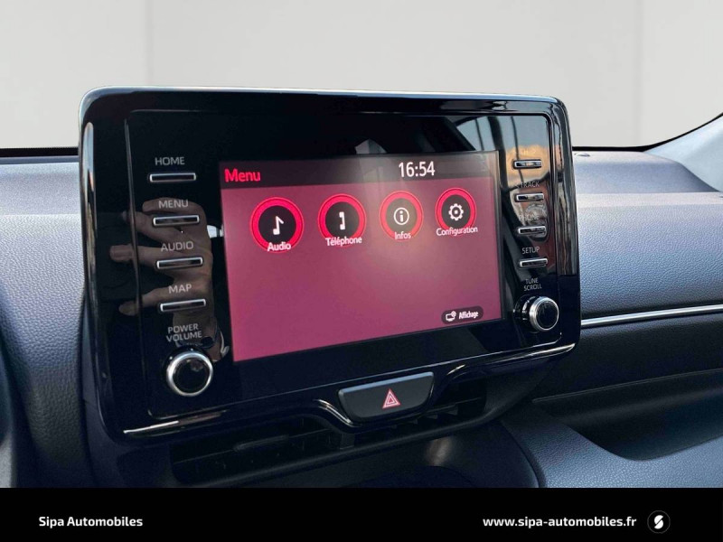 Antenne de toit aileron de requin / Ciel de toit gris clair / Double plancher du coffre / Ecran tactile 7" multifonction / Enjoliveurs 15" / Feux AR à LED (hors clignotants) / Feux de route halogènes / Haut-parleurs x 4 / Peinture Blanc Pur / Rétroviseurs extérieurs couleur carrosserie / Système d'appel d'urgence automatique "E-Call" / Tableau de bord moussé / Toyota Safety Sense Système de sécurité précollision avec détection des véhicules, piétons et cyclistes, actif également dans les intersections. Alerte de franchissement de ligne avec aide au maintien dans la file, assistant de trajectoire et détecteur de fatigue, Lecture des panneaux de signalisation avec limiteur de vitesse, Gestion automatique des feux de route, Régulateur de vitesse adaptatif intelligent / Toyota Touch & App compatible avec Apple CarPlay et Android Auto / Toyota Touch: radio digitale (DAB), système de téléphonie Bluetooth et connectique auxiliaire/USB