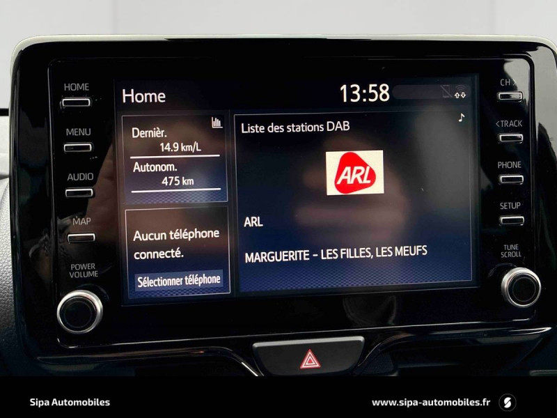 ABS, EBD et BA / Antenne de toit aileron de requin / Ciel de toit gris clair / Double plancher du coffre / Ecran TFT couleur 4,2" / Feux AR à LED (hors clignotants) / Haut-parleurs x 4 / Rétroviseur intérieur électrochromatique / Rétroviseurs extérieurs couleur carrosserie / Système d'appel d'urgence automatique "E-Call" / Système d'ouverture/fermeture et démarrage sans clé "Smart Entry & Start" / Tableau de bord moussé / Toyota Safety Sense : Système de sécurité précollision avec détection des véhicules, piétons et cyclistes, actif également dans les intersections, Alerte de franchissement de ligne avec aide au maintien dans la file, assistant de trajectoire et détecteur de fatigue, Régulateur de vitesse adaptatif intelligent allant jusqu'à l'arrêt, Lecture des panneaux de signalisation avec limiteur de vitesse et Gestion automatique des feux de route / Toyota Touch & App compatible avec Apple CarPlay et Android Auto / Toyota Touch: radio digitale (DAB), système de téléphonie Bluetooth et connectique auxiliaire/USB