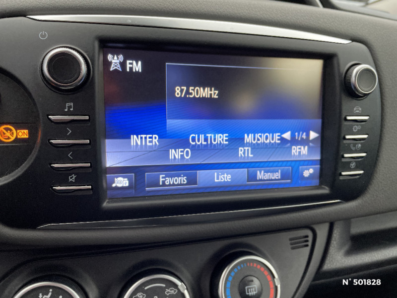 7 Airbags (frontaux, lateraux, rideaux et un protège-genoux conducteur) / Double plancher du coffre / Enjoliveurs 15" Kaori / Indicateur de perte de pression des pneus / Kit de réparation anti-crevaison / Phares halogènes avec feux de jour / Pommeau de levier de vitesse gainé cuir / Système Toyota Touch 2 (écran tactile 7", système de téléphonie Bluetooth, compatibilité iPod) / Toyota Safety Sense Système de sécurité précollision avec détection des piétons, Alerte de franchissement de ligne et détecteur de fatigue, gestion automatique des feux de route, lecture des panneaux de signalisation, régulateur de vitesse adaptatif.