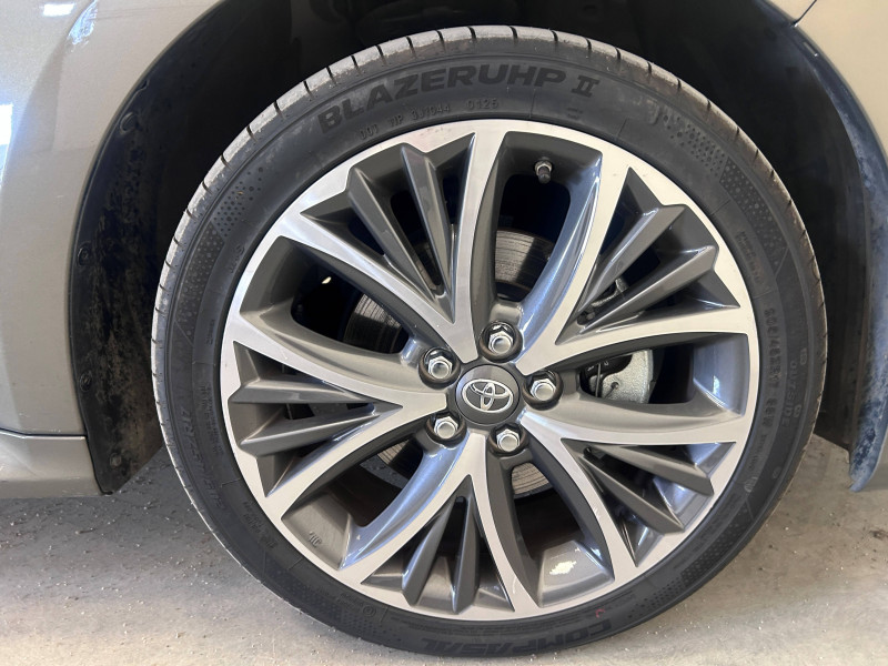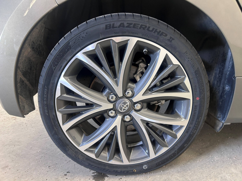 Antenne de toit aileron de requin / Calandre chromée / Ciel de toit gris clair / Contour de vitres chromé / Double plancher du coffre / Eclairage d'ambiance intérieur / Ecran TFT 4,2" / Feux AR à LED (hors clignotants) / Haut-parleurs x 6 / Jantes alliage 17" Sakura usinées / Purificateur d'air ionique nanoe X / Réglage lombaire / Rétroviseur intérieur électrochromatique / Rétroviseurs extérieurs couleur carrosserie / Sellerie Cuir Noir - type Sport / Système d'appel d'urgence automatique "E-Call" / Tableau de bord moussé / Toyota Safety Sense Système de sécurité précollision avec détection des véhicules, piétons et cyclistes, actif également dans les intersections. Alerte de franchissement de ligne avec aide au maintien dans la file, assistant de trajectoire et détecteur de fatigue, Lecture des panneaux de signalisation avec limiteur de vitesse, Gestion automatique des feux de route, Régulateur de vitesse adaptatif intelligent / Toyota Smart Connect avec écran couleur tactile 9" multifonction, 6 HP, navigation connectée et connectivité smartphone sans fil compatible AppleCar Play et Android Auto, et 4 ans de mises à jour cartographiques et de services connectés inclus