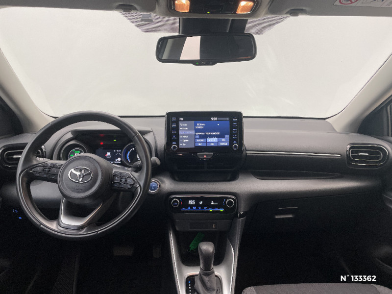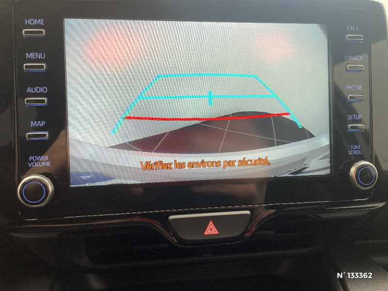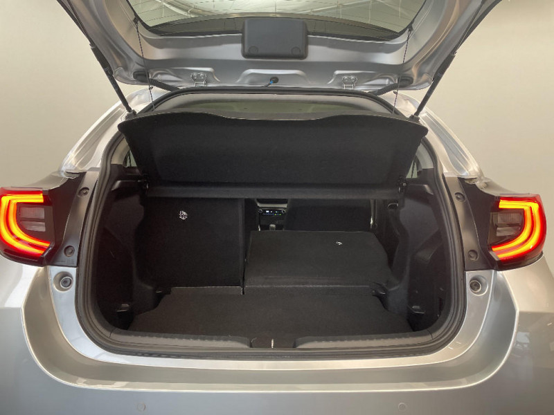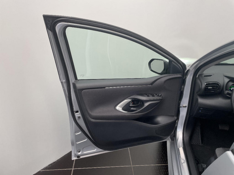 Rétroviseurs extérieurs couleur carrosserie / Sellerie tissu noir/gris / Services connectés de contrôle à distance MyToyota (inclus 4 ans) / Services connectés standards MyToyota (inclus 10 ans) / Système d'appel d'urgence automatique "E-Call" / Système de connectivité smartphone sans fil Apple CarPlay et Android Auto / Système d'ouverture/fermeture et démarrage sans clé "Smart Entry & Start" / Système multimédia Toyota Smart Connect avec écran tactile 10,5" haute définition, Bluetooth, USB, Radio FM et DAB (digitale), 2 ports USB-C et 6 hp, Services intelligents avec Navigation connectée avec infotrafic en temps réel, mises à jour cartographiques, assistant vocal "Hey Toyota" et recherche de points d¿intérêts (inclus 4 ans) / Tableau de bord moussé / Toyota T-MATE / Toyota Safety Sense Système de sécurité précollision avec détection des véhicules, piétons et cyclistes, actif également dans les intersections+Alerte de franchissement de ligne avec aide au maintien dans la file, assistant de trajectoire et détecteur de fatigue+Lecture des panneaux de signalisation avec limiteur de vitesse+Gestion automatique des feux de route+Régulateur de vitesse adaptatif intelligent+Système d'arrêt d'urgence autonome +Système d'assistance à la conduite proactive+Suppression de l'acceleration / Antenne de toit aileron de requin / Assistant visuel de conduite (DMC) / Boîte automatique à variation continue / Ciel de toit gris clair / Compteur numérique 7" / Contrôle de traction (TCS) / Double plancher du coffre / Eclairage d'ambiance intérieur / Electrostabilisateur programmé (ESP) / Feux de croisement à LED / Rétroviseur intérieur électrochromatique