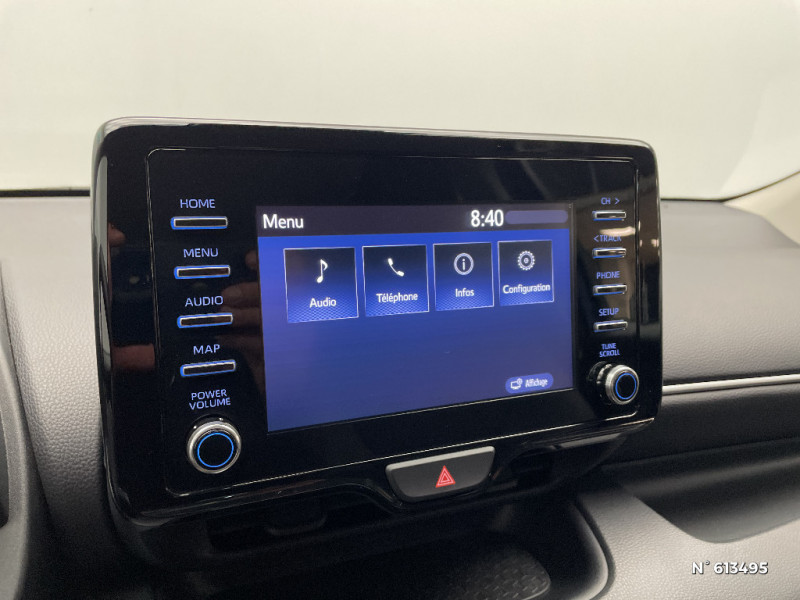Frein AR à disques / Enjoliveurs 15" Kaori / Kit de réparation anti-crevaison / Planche de bord "Soft touch" / Poignées de portes extérieurs couleur carroserie / Projecteurs halogènes avec feux de jour / ABS, EBD et BA / Rétroviseurs extérieurs électriques dégivrants couleur carrosserie / Sellerie tissu Mabillon / Système de contrôle de stabilité (VSC) + Système de contrôle de motricité (TRC) / Système Toyota Touch 2 (écran tactile 7", système de téléphonie Bluetooth, compatibilité iPod) / Volant, frein à main et pommeau de levier de vitesses gainés cuir perforé avec surpiqûres gris / 7 Airbags (frontaux, lateraux, rideaux et un protège-genoux conducteur) / Boîte automatique E-CVT / Indicateur de perte de pression des pneus