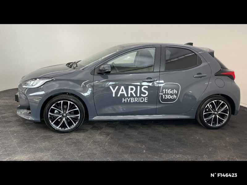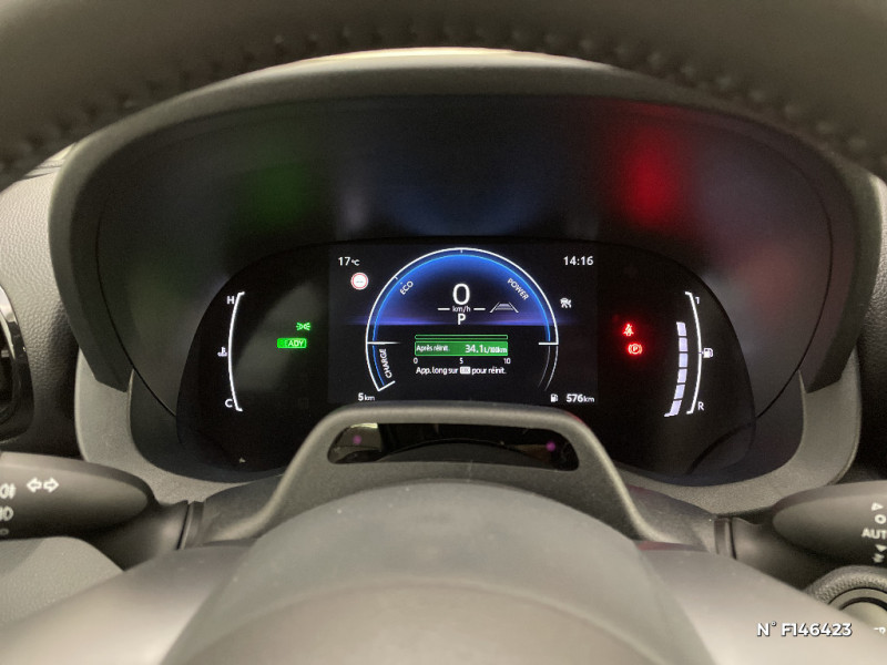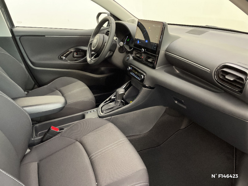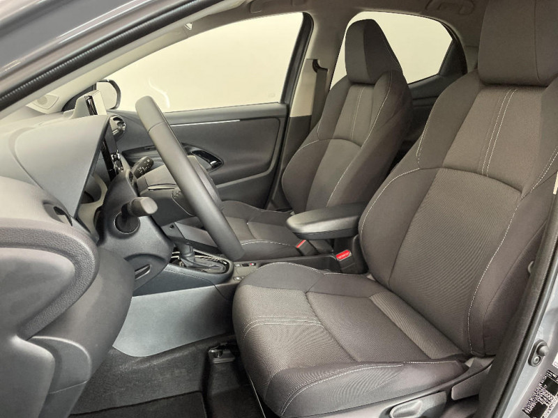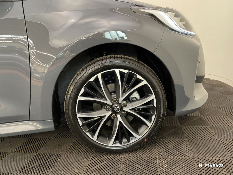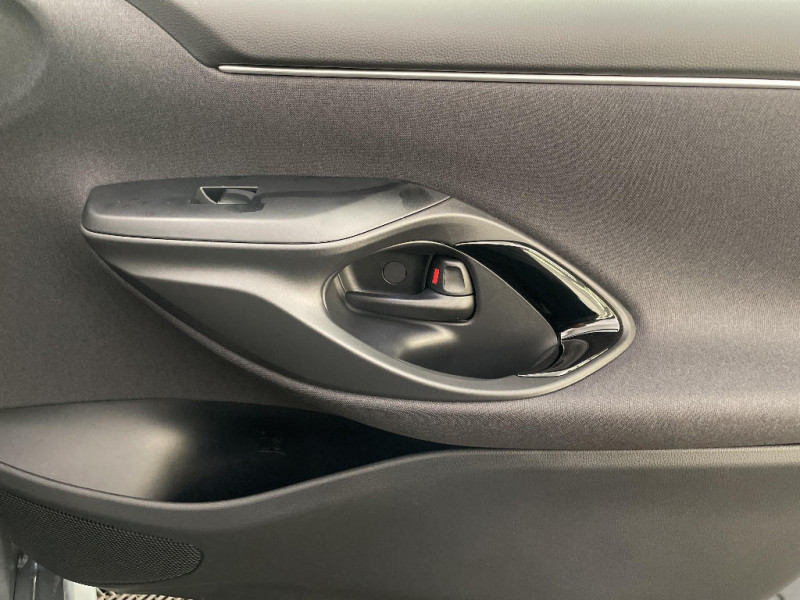 Antenne de toit aileron de requin / Assistant visuel de conduite (DMC) / Boîte automatique à variation continue / Ciel de toit gris clair / Compteur numérique 7" / Contrôle de traction (TCS) / Double plancher du coffre / Eclairage d'ambiance intérieur / Electrostabilisateur programmé (ESP) / Feux de croisement à LED / Rétroviseur intérieur électrochromatique / Rétroviseurs extérieurs couleur carrosserie / Sellerie tissu noir/gris / Services connectés de contrôle à distance MyToyota (inclus 4 ans) / Services connectés standards MyToyota (inclus 10 ans) / Système d'appel d'urgence automatique "E-Call" / Système de connectivité smartphone sans fil Apple CarPlay et Android Auto / Système d'ouverture/fermeture et démarrage sans clé "Smart Entry & Start" / Système multimédia Toyota Smart Connect avec écran tactile 10,5" haute définition, Bluetooth, USB, Radio FM et DAB (digitale), 2 ports USB-C et 6 hp, Services intelligents avec Navigation connectée avec infotrafic en temps réel, mises à jour cartographiques, assistant vocal "Hey Toyota" et recherche de points d¿intérêts (inclus 4 ans) / Tableau de bord moussé / Toyota T-MATE / Toyota Safety Sense Système de sécurité précollision avec détection des véhicules, piétons et cyclistes, actif également dans les intersections+Alerte de franchissement de ligne avec aide au maintien dans la file, assistant de trajectoire et détecteur de fatigue+Lecture des panneaux de signalisation avec limiteur de vitesse+Gestion automatique des feux de route+Régulateur de vitesse adaptatif intelligent+Système d'arrêt d'urgence autonome +Système d'assistance à la conduite proactive+Suppression de l'acceleration