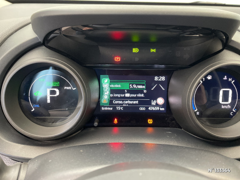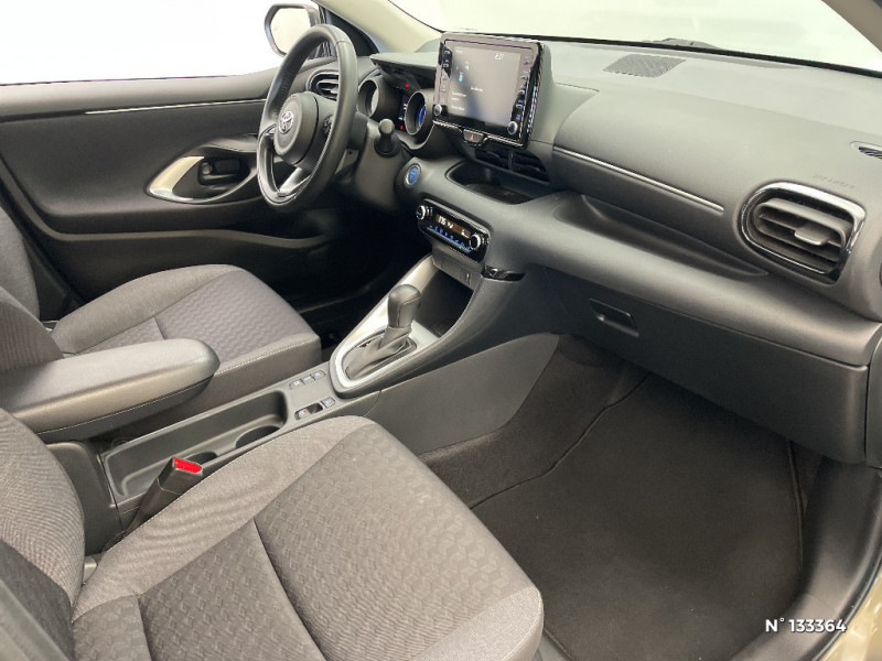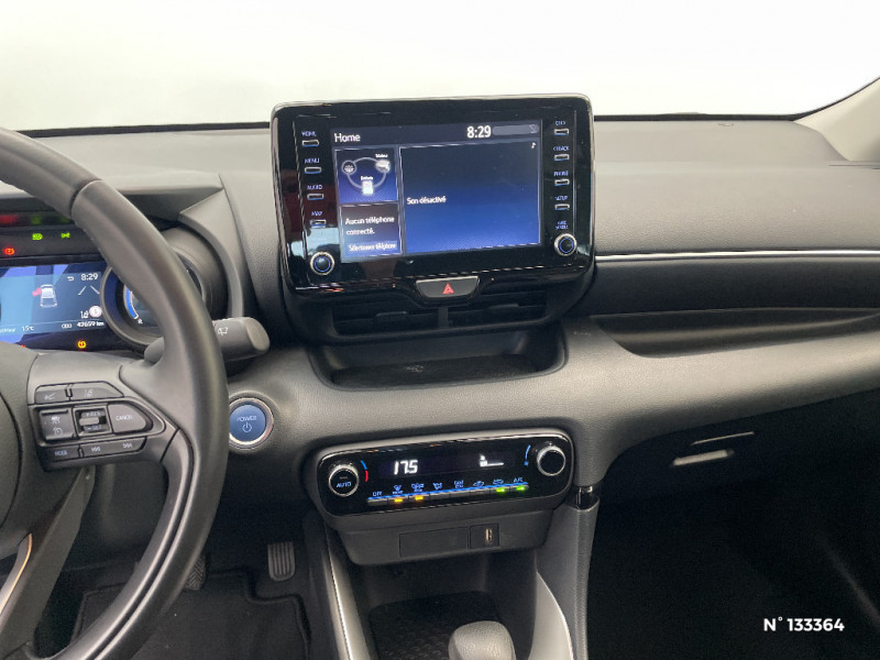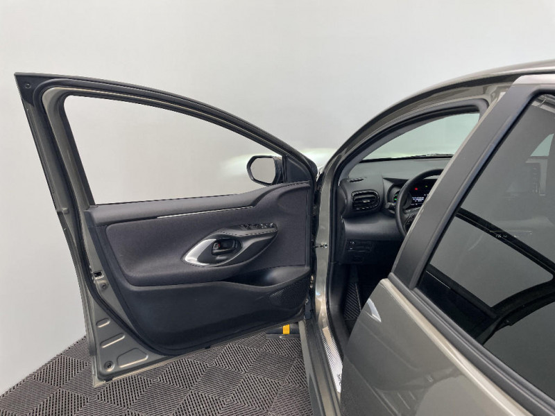 Antenne de toit aileron de requin / Assistant visuel de conduite (DMC) / Boîte automatique à variation continue / Ciel de toit gris clair / Compteur numérique 7" / Contrôle de traction (TCS) / Double plancher du coffre / Eclairage d'ambiance intérieur / Electrostabilisateur programmé (ESP) / Feux de croisement à LED / Rétroviseur intérieur électrochromatique / Rétroviseurs extérieurs couleur carrosserie / Sellerie tissu noir/gris / Services connectés de contrôle à distance MyToyota (inclus 4 ans) / Services connectés standards MyToyota (inclus 10 ans) / Système d'appel d'urgence automatique "E-Call" / Système de connectivité smartphone sans fil Apple CarPlay et Android Auto / Système d'ouverture/fermeture et démarrage sans clé "Smart Entry & Start" / Système multimédia Toyota Smart Connect avec écran tactile 10,5" haute définition, Bluetooth, USB, Radio FM et DAB (digitale), 2 ports USB-C et 6 hp, Services intelligents avec Navigation connectée avec infotrafic en temps réel, mises à jour cartographiques, assistant vocal "Hey Toyota" et recherche de points d¿intérêts (inclus 4 ans) / Tableau de bord moussé / Toyota T-MATE / Toyota Safety Sense Système de sécurité précollision avec détection des véhicules, piétons et cyclistes, actif également dans les intersections+Alerte de franchissement de ligne avec aide au maintien dans la file, assistant de trajectoire et détecteur de fatigue+Lecture des panneaux de signalisation avec limiteur de vitesse+Gestion automatique des feux de route+Régulateur de vitesse adaptatif intelligent+Système d'arrêt d'urgence autonome +Système d'assistance à la conduite proactive+Suppression de l'acceleration