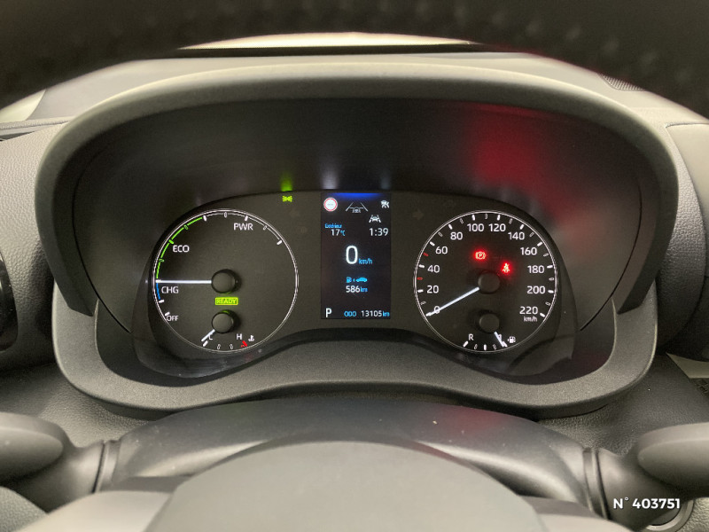 Antenne de toit aileron de requin / Assistant visuel de conduite (DMC) / Boîte automatique à variation continue / Ciel de toit gris clair / Contrôle de traction (TCS) / Double plancher du coffre / Electrostabilisateur programmé (ESP) / Enjoliveurs 15" / Feux de route halogènes / Rétroviseur intérieur électrochromatique / Rétroviseurs extérieurs couleur carrosserie / Services connectés standards MyToyota (inclus 10 ans) / Système d'ouverture/fermeture et démarrage sans clé "Smart Entry & Start" / Système multimédia Toyota Touch 3 - Ecran couleur tactile 9" haute définition - Bluetooth, USB, Radio FM et DAB (digitale) - 2 ports USB-C et 6 haut-parleurs / Tableau de bord moussé / Toyota T-MATE / Toyota Safety Sense Système de sécurité précollision avec détection des véhicules, piétons et cyclistes, actif également dans les intersections+Alerte de franchissement de ligne avec aide au maintien dans la file, assistant de trajectoire et détecteur de fatigue+Lecture des panneaux de signalisation avec limiteur de vitesse+Gestion automatique des feux de route+Régulateur de vitesse adaptatif intelligent+Système d'arrêt d'urgence autonome +Système d'assistance à la conduite proactive+Suppression de l'acceleration / Système d'appel d'urgence automatique "E-Call" / Système de connectivité smartphone sans fil Apple CarPlay et Android Auto