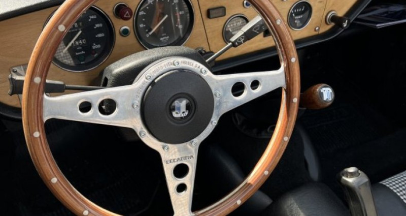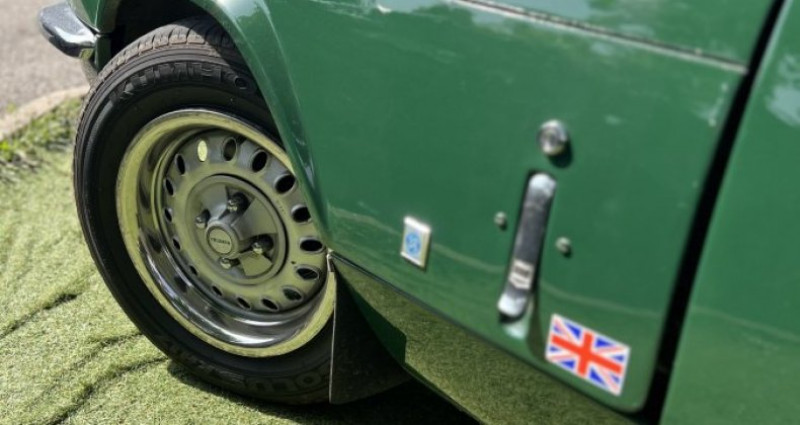 Triumph Spitfire 1500 FH 1977 Née pour rivaliser avec les petits roadsters italiens, la Triumph Spitfire a très vite trouvé sa place dans le cœur des passionnés. Dessinée par Michelotti, légère, vive et terriblement séduisante, elle incarne l’élégance britannique dans ce qu’elle a de plus accessible… et de plus authentique. La version 1500 FH, proposée ici dans sa teinte verte d'origine, est le modèle le plus abouti de la lignée. Elle combine un moteur plus coupleux à une finition revue, le tout dans une silhouette qui n’a rien perdu de son charme. L’intérieur en cuir noir souligne le contraste chic et vintage de cette anglaise taillée pour les balades.