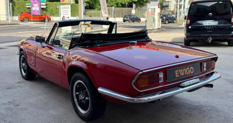 Triumph Spitfire 1500 FH + CG COLLECTION + RHD cabriolet, rouge, 9 cv, 2 portes, première mise en circulation le 01/03/1978, garantie 6 mois. - NOS SERVICES ET PRESTATIONS COMPLÉMENTAIRES - - Visite virtuelle : avant de vous déplacer, visualisez votre futur véhicule sous toutes ses coutures . Contactez-nous pour en voir plus ! - Extension de garantie jusqu'à 60 mois. - Solutions de Financement de 12 à 84 mois. - Livraison dans toute la France métropolitaine (sur devis). - Reprise possible de votre ancien véhicule. - Les informations délivrées par cette annonce sont non contractuelles et données à titre indicatif. Packs disponibles (véhicules éligibles au Label) - Pack Clés en Main - 691 € TTC(¹)(²) Démarches (hors carte grise) | 1/4 de carburant | Nettoyage First | Garantie 6 mois | Label inclus? - Pack Sérénité - 891 € TTC(¹)(²)- Démarches (hors carte grise) | 1/2 de carburant | Nettoyage Confort | Garantie 12 mois | Label inclus? - Pack Prestige - 1.091 € TTC(¹)(²) Démarches (hors carte grise) | Plein complet | Nettoyage Prestige | Garantie 12 mois | Label inclus? + Surprise du chef - (¹) Les véhicules non éligibles au Label bénéficient de tarifs préférentiels. Veuillez contacter votre conseiller pour obtenir les conditions tarifaires applicables. (²) Tarif pour les véhicules deux roues motrices dont la valeur de vente est inférieure à 60 000 € TTC. - - Accès transport en commun depuis la gare Nancy centre / Possibilité de venir vous chercher à la gare de Nancy centre - Véhicule visible sur rendez-vous - Du Lundi au Samedi de 9h à 18h30 - EWIGO NANCY - 144 rue du faubourg des trois maisons - 54000 NANCY - Tel : [Coordonnées masquées] 2 places OPTIONS ET ÉQUIPEMENTS : Extérieur : - jantes : aluminium Intérieur : - Allume cigare - non fumeur - volant sport Pack : - Immatriculation Française - Volant 3 branches en cuir - Tableau de bord cuir Sécurité : - roue de secours Autres équipements et informations : - 71 / 71CH - CARTE GRISE COLLECTION - DECAPOTABLE - ENTRETIEN POUR LA VENTE - Factures d'entretien - Faible kilométrage - ORIGINE UK - OVERBOOST - SONO PIONEER - VENTILATEUR AUXILIAIRE - VOLANT A DROITE - Véhicule d'origine - Classe Crit'air : NC - Puissance kilowatt : 52 kw - nombre de rapports : 4 vitesses - puissance réelle : 71 ch - émission CO2 : 228 g/km - état : bon Référence annonce : d140254