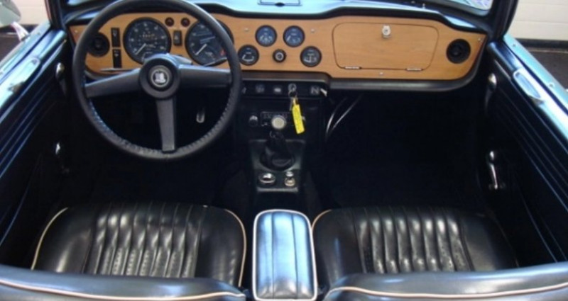 Triumph TR250 1968, 6 cylindres 2.5L 102cv, boite manuelle 4, sorties d'échappement chromées, assistance de freins, couvres culbuteurs chromés, longue portés. Porte bagages, jantes Minilite, tableau de bord bois, sur-tapis Triumph. Dossier de factures. Carte grise française de collection.Très bel état, roule parfaitement. Modèle rare. Nous recherchons des voitures de collection, soit en dépôt-vente (gratuit), soit en achat comptant, uniquement des voitures en parfait état et avec contrôle technique. Données supplémentaires - - Vitesse maxi: 200 - Portes: 2