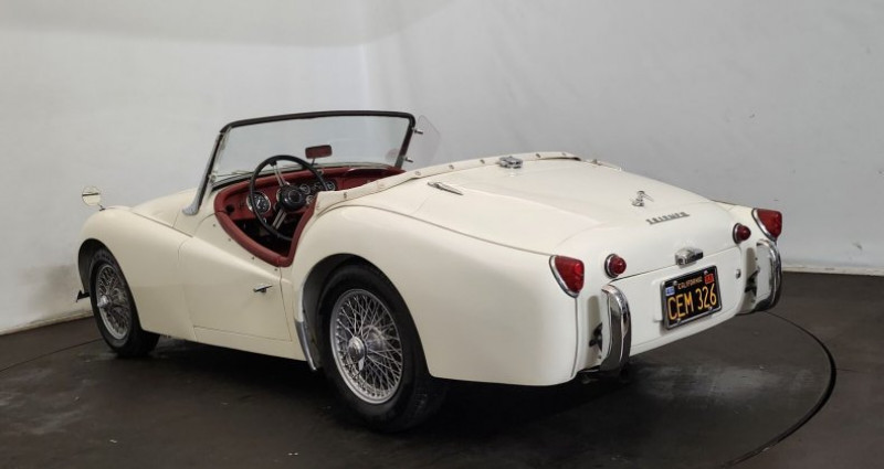 Etat - - Mécanique : Bon Carrosserie : Bonne Peinture : Bonne Intérieur : Bon Origine : Etat-unis / Californie » Véhicules de collection » Triumph Triumph TR3 B Année 1963 Même propriétaire depuis 21 ans White Sellerie Rouge, liserés Blancs Capote Blanche Moteur 2138 cc Boite 4 rapports Overdrive Allumage électronique Alternateur Ventilateur électrique Radiateur aluminium Couvre culasse aluminium Echappement inox Chauffage Banquette arrière Jantes à rayons Volant bakelite Pommeau levier de vitesses aluminium Déflecteurs Capote Side screens Couvre tonneau Couvre capote Coupe batterie « Triumph TR3 dite TR3B. En 1961, Triumph se retrouva avec un surplus de TR3A, suite à une erreur d’appréciation du marché. Heureusement, le distributeur de Triumph aux Etats-Unis, qui avait des doutes sur l’accueil réservé à la nouvelle TR4, proposa de reprendre le stock excédentaire de TR3A. Il s’ensuivit une adaptation de ces voitures pour le marché américain qui seront dénommées non officiellement « TR3B ». Elles étaient un peu mieux finies et disposaient d’une nouvelle boîte de vitesses entièrement synchronisée. A l’exception de 500 d’entre-elles, toutes reçurent le nouveau moteur 2.1-Litre. » Restaurée du chassis au début des années 2000 Historique, service instruction manual, photos disponibles Vendue avec Carte Grise Française Collection et Contrôle Technique OK Révisée Garantie 6 mois Visible uniquement sur rendez vous Livraison possible dans toute la France REF 2268