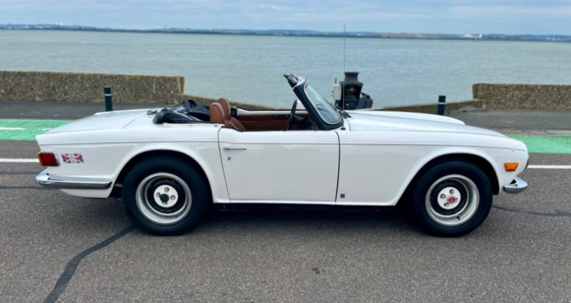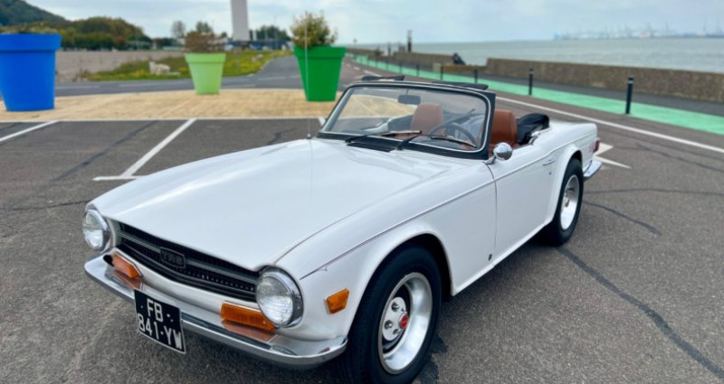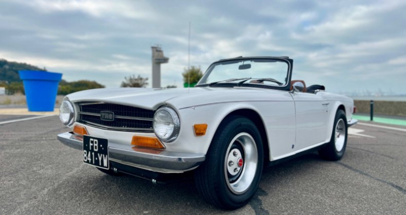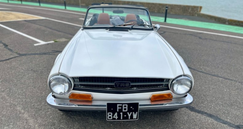 TRIUMPH TR6 Année 1972. 119 000 km. Carte grise française de collection. Moteur 2,5L carburateurs et boîte de vitesses 4 rapports. Cette jolie TR6 est en très bon état général. Son intérieur marron match très bien avec sa carrosserie blanche ! Le 6 cylindres en ligne tourne parfaitement, la voiture est très agréable. La capote en simili est également en très bon état. Elle dispose de tapis de sol TRIUMPH noir pour protéger les moquettes. Nous avons nous-même importé cette TRIUMPH en 2018. Cette voiture sera vendue révisée et avec un contrôle technique favorable de moins de 6 mois. Garantie 3 mois moteur, boîte de vitesses et pont Livraison possible toutes distances Véhicule visible dans nos locaux de Honfleur sur rendez-vous Stock et Atelier Classic Cars Company: Quai en Seine 3 14600 Honfleur En stock : MGB, Austin-Mini, Jaguar, Defender, Land-Rover