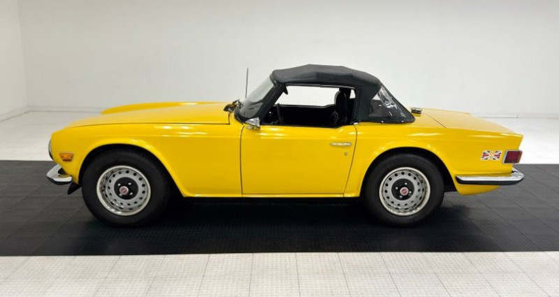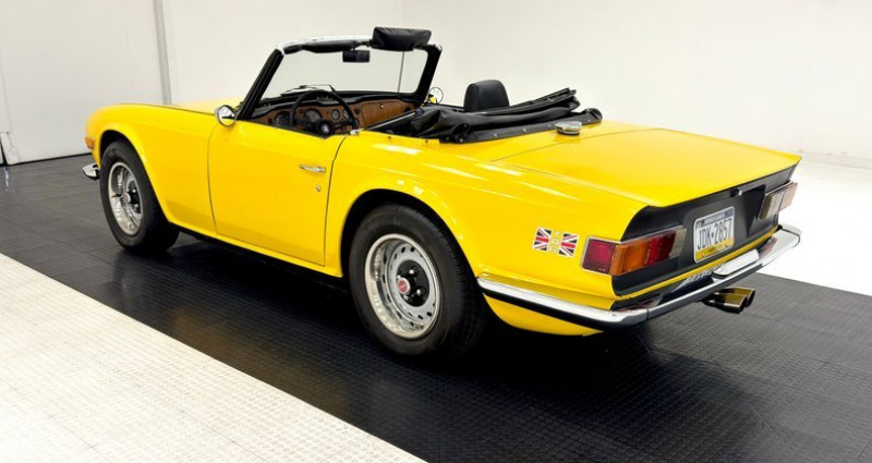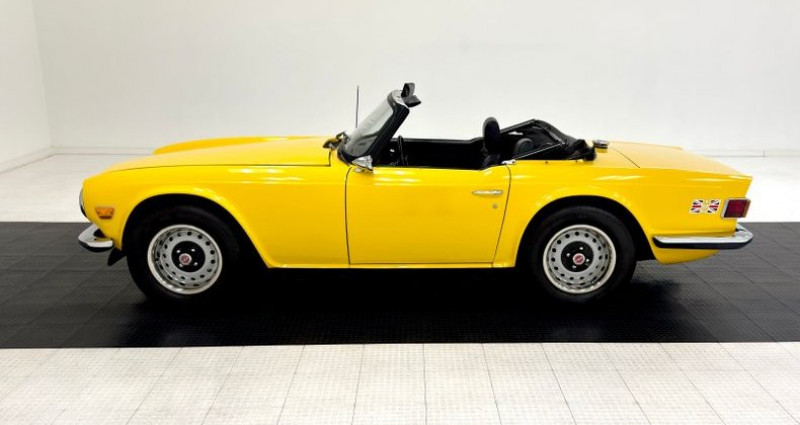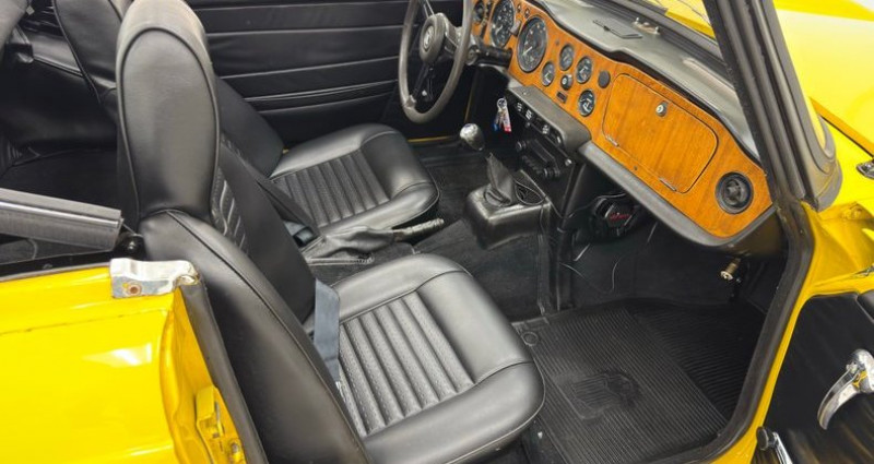 Informations fournies par le vendeur : 1972 Triumph TR6 Roadster • Two stage Jasmine Yellow exterior • Black vinyl interior with tuck and roll inserts • 2.5 liter inline six engine with 2 SU carburetors, 104 horsepower • 5-speed manual transmission • Rear axle with 3.80 gears • Yellow and black exterior with chrome details • 15-inch wheels with red TR6 hubcaps and polished trim rings • Single round headlights • Black canvas top • Black carpet, black rubber mats, gray carpeted trunk floor • 15-inch wheels with red TR6 hubcaps and polished trim rings • Coil springs suspension • Semi trailing arms rear suspension • Clean engine bay with brake booster, front disc brakes and rear drums • Stock exhaust system with twin chrome tailpipes • Functional issues include odometer not working. Provenance : , USA. Disponibilité : environ 7 semaines, clés en main. 28 000 € tout compris (import, taxes, procédure d'immatriculation). Nous représentons les acheteurs sur le marché nord-américain et sécurisons chaque étape du processus, de la sélection jusqu’à la mise en circulation en Europe. Basés en France, nous faisons bénéficier nos clients d’un réseau solide de vendeurs professionnels, de collectionneurs privés, d’experts indépendants et de partenaires logistiques présents sur l’ensemble des États-Unis et du Canada. Annonce publiée le 21/11/2025