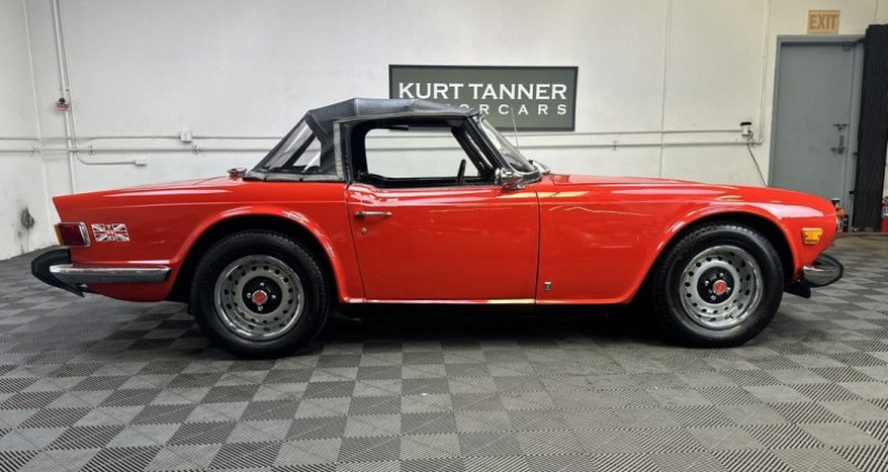 - Marque : Triumph - Modèle : TR6 - Année : 1974 - Couleur extérieure : PIMENTO - Couleur intérieure : NOIR - Type de carrosserie : Cabriolet - Boîte de vitesses : Boîte manuelle à 4 vitesses - Transmission : RWD (Traction arrière) - Kilométrage : 14 500 - État général : Restauré récemment par un propriétaire local de Californie du Sud - Intérieur : Intérieur entièrement remplacé lors de la restauration, y compris des panneaux OEM noirs, tapis de sol en pile coupée, sièges OEM, panneaux dashboard complètement renouvelés, bois sombre de façade, volant sportif, ceintures de sécurité à 3 points, set de visières, joints de porte, kit de plancher de coffre et mat, radio moderne, toit neuf avec kit de réflexion original.. Provenance : California. Disponibilité : environ 7 semaines, clés en main. 30 500 € tout compris (importation, taxes, procédure d'immatriculation). Annonce publiée le 19/12/2025