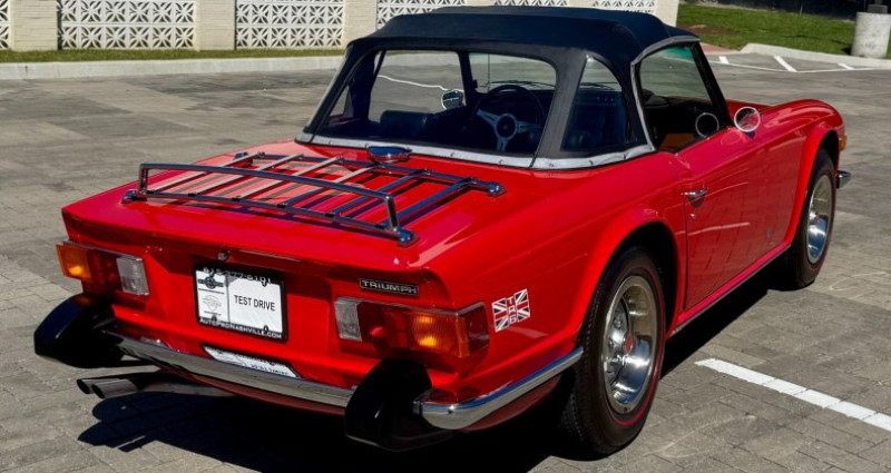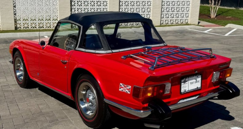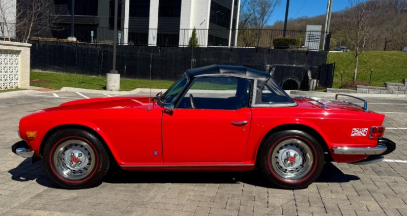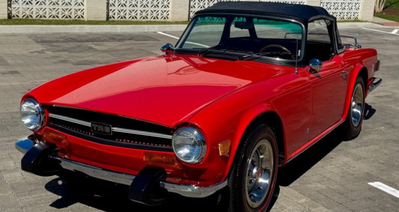 - Année : 1974 - Modèle : Triumph TR6 Convertible - Couleur extérieure : Rouge - Couleur intérieure : Noir - Type de carrosserie : Cabriolet - Transmission : Manuelle 4 vitesses - Moteur : I-6 2.5L - Kilométrage : 70 572 miles - Roues classiques - Exhauste bien entretenue - Boîte de vitesses manuelle - Coffre spacieux pour un cabriolet. Provenance : Tennessee. Disponibilité : environ 7 semaines, clés en main. 39 000 € tout compris (importation, taxes, procédure d'immatriculation). Annonce publiée le 30/12/2025