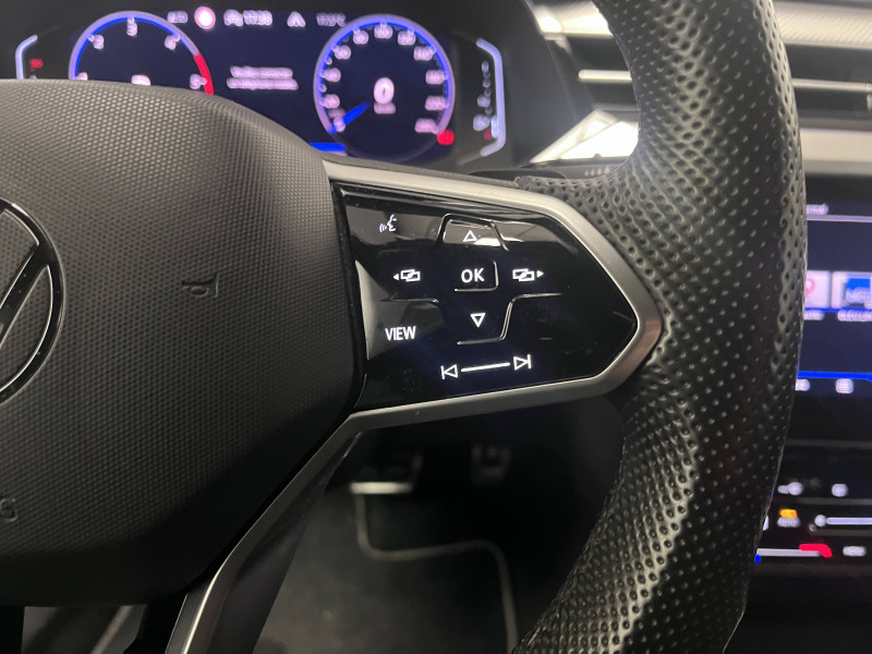 1 interface USB-C et 1 prise de chargement USB-C / Accoudoir central AV réglable en hauteur et en profondeur avec compartiment de rangement, avec diffuseurs d'air à l'AR / Activation automatique du signal de détresse en cas de freinage d'urgence / Airbags frontaux AV conducteur et passager (Airbag passager désactivable par clé) / Allumage automatique des feux avec fonctions "Coming Home - Leaving Home" / App-Connect sans fil affichage et contrôle via l'écran tactile du véhicule, du contenu, des fonctions et des applications compatibles présents sur le Smartphone (compatibilité avec les systèmes Apple CarPlay et Android Auto). Fonction sans fil uniquement disponible avec Apple CarPlay / Applications chrome sur la commande rotative d'éclairage et diffuseurs d'air à l'AV / Applications chrome sur les poignées de porte / Applications décoratives en aluminium brossé "Silver Rise" pour la planche de bord et les revêtements de porte / Applications décoratives en aluminium sur le tableau de bord et les revêtements de portes / Appui-têtes AV (2) à sécurité optimisée, réglables en hauteur sur les sièges conducteur et passager / Assise de banquette AR rabattable (60:40) avec accoudoir central et trappe à ski / Avertisseur sonore 2 tons / Badges "R" sur les côtés / Baguettes latérales inférieures chromées / Buses de lave-glace AV dégivrantes / Carrosserie entièrement galvanisée garantie 12 ans contre la corrosion d'origine interne / Ceintures de sécurité AR 3 points d'ancrage à enrouleurs, avec prétentionneur sur les sièges principaux / Ceintures de sécurité AV 3 points à enrouleur réglables en hauteur avec prétensionneurs / Ciel de pavillon Noir Titane / Climatisation automatique "Pure Air Climatronic" tri-zone avec commande à l'AV et à l'AR / Commande vocale intuitive : Activer la commande vocale avec l'expression "Bonjour Volkswagen" / Contrôleur de pression des pneus : Affichage de la pression des quatre pneumatiques indépendamment / Correcteur électronique de trajectoire ESP, amplificateur de freinage d'urgence, antiblocage des roues ABS, blocage électronique de différentiel EDS, répartiteur électronique de freinage EBV, antipatinage électronique ASR, régulateur électronique de couple MSR et assistance au contrebraquage / Couvre-coffre / Déverrouillage du hayon/capot AR de l'intérieur (électrique) / Digital Cockpit Pro: combiné d'instruments digital avec écran digital haute résolution couleur de 10.25" / Double tuner FM pour une réception radio de qualité optimale / Dynamic Light Assist / Eclairage d'ambiance blanc : Eclairage du plancher à LED aux places AV + Eclairage à LED de la partie inférieure des portes AV + 2 spots de lecture à LED à l'AV et 2 spots de lecture à LED à l'AR / Emergency Assist: Assistant en cas d'incapacité du conducteur à réagir / Entourage chromé des vitres latérales / Fatigue Detection : système de détection de fatigue du conducteur qui analyse le comportement du conducteur et recommande un temps de repos par l'apparition d'un message visuel et sonore / Feu AR de brouillard d'un côté, feux de recul des deux côtés / Feux AR à LED avec clignotants AR défilants / Frein de stationnement électromécanique avec fonction d'immobilisation en pente "Auto Hold" et assistant de démarrage en côte / Freins à disque ventilés à l'AV, freins à disque à l'AR / Front Assist - Système de surveillance périmétrique avec fonctions de freinage d'urgence en ville et détection des piétons / Interface pour téléphone "Comfort" avec recharge par induction / Jantes en alliage léger 18" "Sebring" 8Jx18" noir diamanté et pneumatiques 245/45 R18 95V, à résistance au roulement optimisée, avec écrous antivol / Keyless Access : système de verrouillage/déverrouillage et démarrage avec bouton Start/Stop / Kit de dépannage : compresseur 12 V et produit d'étanchéité de pneu / Lane Assist - Assistant au maintien dans la voie avec correction de trajectoire / Light Assist - Activation ou désactivation automatique des feux de route / Monogramme "R" sur la calandre / OEillets d'arrimage ISOFIX compatible i-Size (dispositif pour fixation de 2 sièges enfants sur les places extérieures de la banquette AR) / Ouverture et fermeture du coffre main-libre Easy Open/Easy Close / Pack "Easy Open & Close" / Pare-chocs AV et AR spécifiques R-Line / Pare-soleils AV avec miroir de courtoisie éclairé / Park Assist 3.0 : Système d'assistance au stationnement en créneau et en bataille / Pédalier en acier inoxydable brossé / Plafonnier à extinction temporisée / Plancher de chargement relevable / Pochette de premiers secours, triangle de sécurité et gilet rétro réfléchissant / Préparation pour "We Connect" et "We Connect Plus" - Durée 3 ans / Prise 12 V dans la console centrale AR / Prise 230 V sur la console centrale à l'AR / Projecteurs AV à LED avec feux de jour à LED et clignotants / Projecteurs IQ.Light - LED avec fonction antibrouillard intégrée et éclairage statique d'intersection / Réglage dynamique du site des projecteurs LED / Régulateur de vitesse adaptatif et prédictif ACC avec limiteur de vitesse / Rétroviseur extérieur côté passager avec fonction mémoire pour la marche AR / Rétroviseurs extérieurs électriques, dégivrants et asphérique côté conducteur / Rétroviseurs extérieurs réglables "jour/nuit automatique" côté conducteur et rabattables électriquement, avec fonction dégivrage et éclairage de proximité / Revêtement de porte en tissu tissé / Sélection du profil de conduite / Sellerie en Microfleece "ArtVelours" / cuir "Vienna" avec monogramme "R" / Service d'appel d'urgence (inclus 10 ans et disponible indépendamment de l'inscription dans le système d'infotainment) / Servofrein électromécanique (eBKV) / Seuils de portes en Acier inoxydable / Side Assist (assistance de changement de voie) / Siège conducteur ErgoComfort labelisé AGR : inclinaison de 