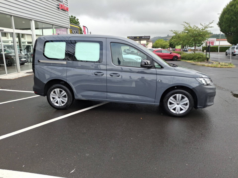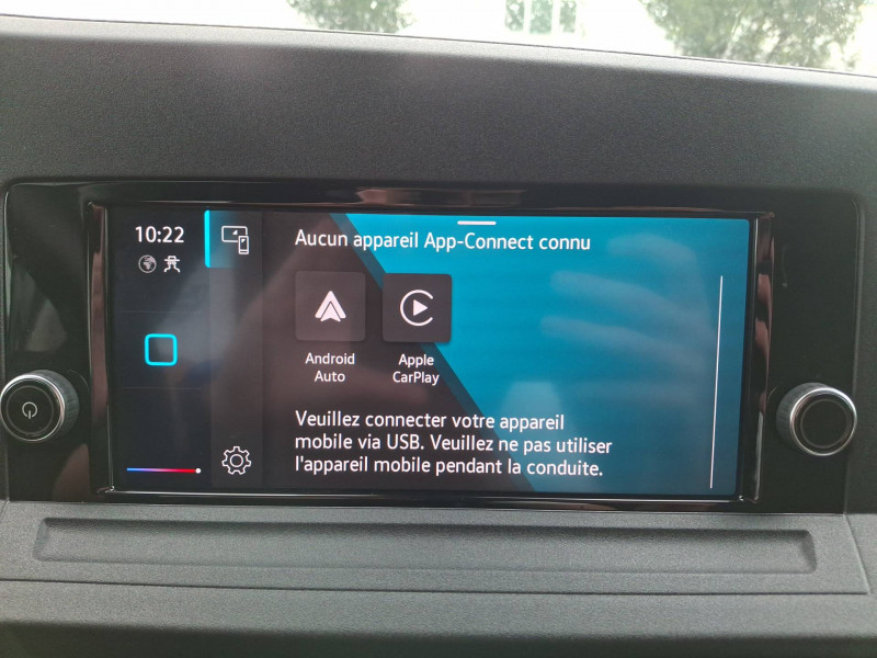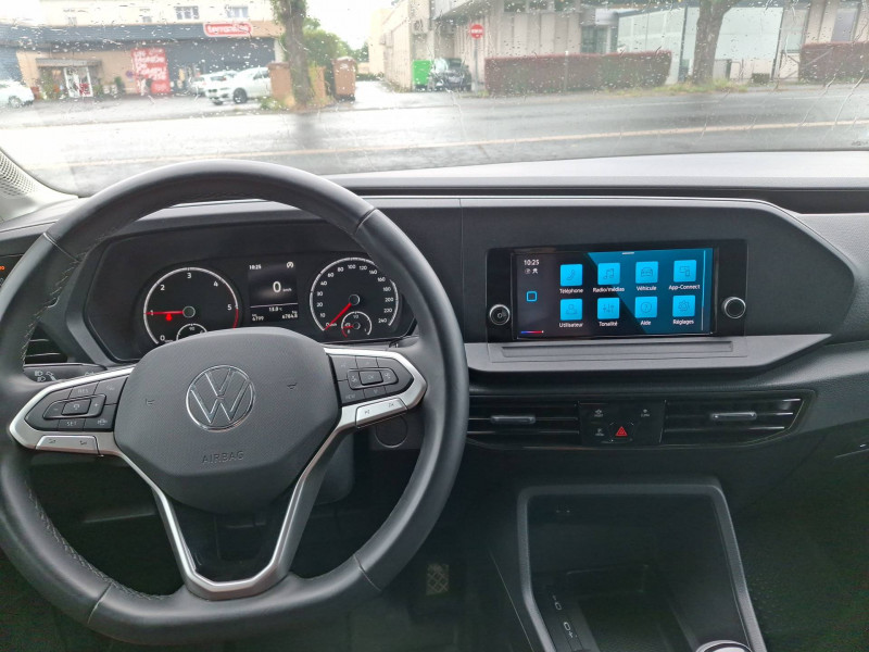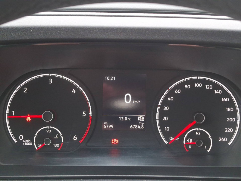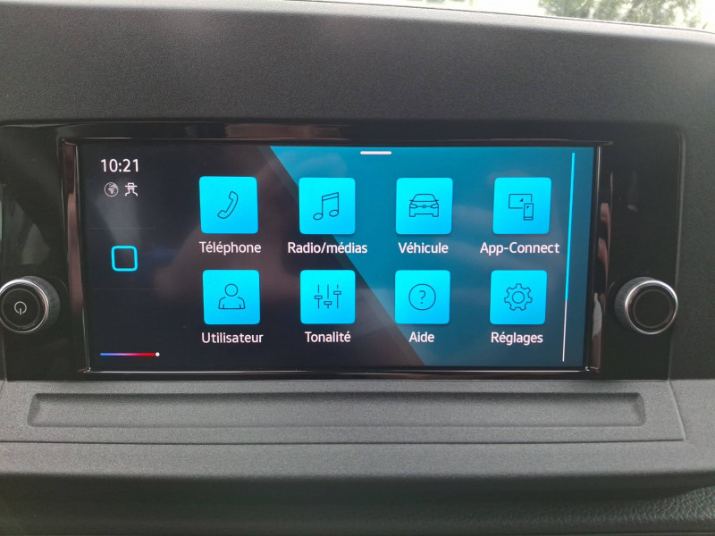 2 spots LED dans compartiment de charge / Allumage automatique des projecteurs, avec éclairage de jour / Ceintures de sécurité 3 points automatiques AV, avec réglage en hauteur des ceintures et rétracteur de ceinture électriques / Jantes en acier 6,5J x 16", en Noir / Pack Aide à la conduite City Drive / 2 clés pliantes radiocommandées / 2 connexions USB (type C) dans la console centrale AV / Accoudoir pour le siège conducteur / Affichage de la périodicité 30000 km ou 2 ans (variable) / Airbag conducteur et passager (désactivation côté passager) / App-Connect avec fil / Autoradio "Composition" avec écran tactile couleur 20,96 cm (8,25") et 4 HP / Boitiers de rétroviseur extérieur et poignées en Noir, rail de porte coulissante en Argent / Boîte à gants fermée verrouillable et éclairée / Climatiseur à commande manuelle / Cloison de séparation haute sans fenêtre, sans rétroviseur intérieur de sécurité / Combiné d'instruments (km/h), affichages de la vitesse, compteur totalisateur et journalier, régime, niveau de carburant et heure / Console centrale avec 2 porte-boissons universels / Diffuseurs d'air AV en Noir Mat / Dispositif start/stop de mise en veille avec récupération de l'énergie au freinage / Enjoliveurs pleins / Fonctionnement intermittent des essuie-glaces avec capteur de luminosité / Frein à disque AR 15" / Frein à main électrique avec Hill assist / Galerie de toit dans la cabine (bac vide-poches dans le ciel de pavillon avec 2 poignées dans la cabine) / Garniture de plancher en moquette dans la cabine / Garniture de tableau de bord Mat / Interface pour téléphone portable / Levier de vitesses en plastique / Normes anti-pollution Euro 6d-ISC-FCM (AQ) / Pare-chocs en gris / Pare-soleil sans miroir, pochette pour ticket côté passager AV et étiquette Airbag sur pare-soleil / Pneus 205/60 R16 96H XL à résistance au roulement optimisée / Porte coulissante tôlée à droite dans le compartiment de charge / Portes battantes sans baies de fenêtre, division asymétrique / Projecteurs doubles halogènes H7 / Préparation barres de toit/galerie porte-bagages / Préparation pour We Connect et We Connect Plus / Revêtement de plancher caoutchouc dans le compartiment de charge / Revêtement de porte et accoudoir en plastique / Revêtement latéral standard dans le compartiment de charge / Roue de secours en acier avec pneu normal avec outillage de bord et cric / Réglage en hauteur du siège conducteur / Réglage manuels des phares / Servotronic : Direction assistée à la vitesse / Signal sonore et lumineux pour ceinture du conducteur non attachée / Système d'appel d'urgence eCall / Verrouillage centralisé avec radiocommande et commande d'ouverture intérieure de porte