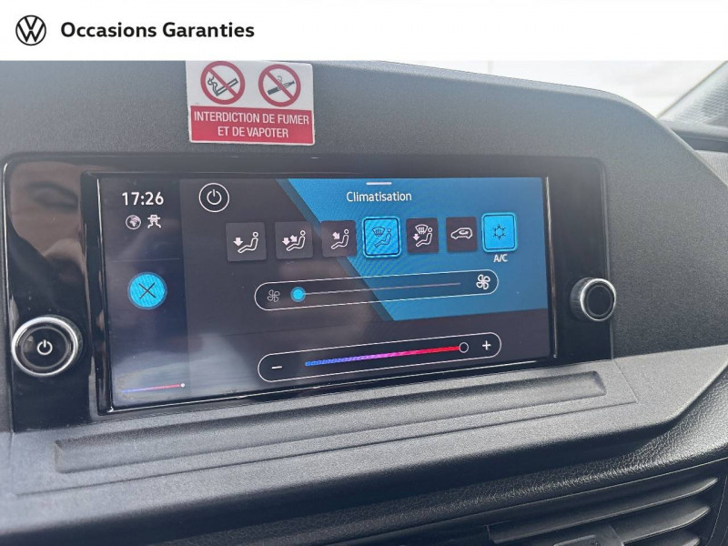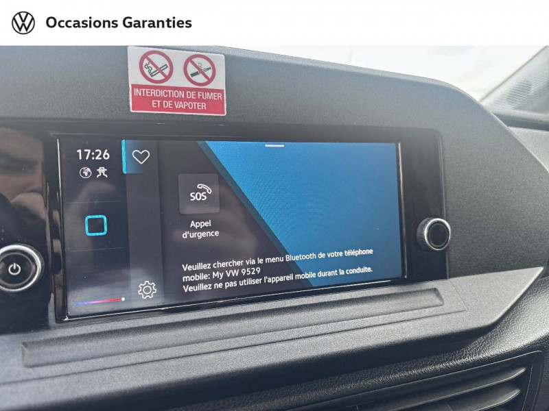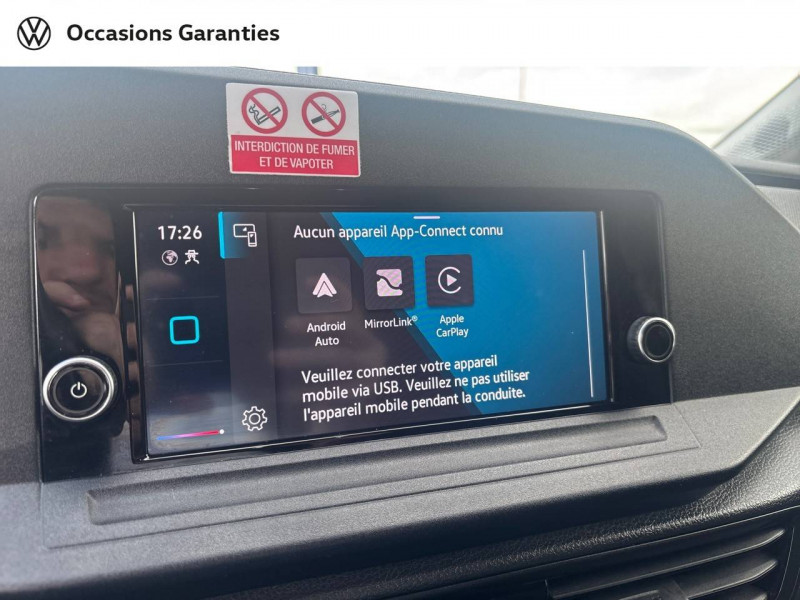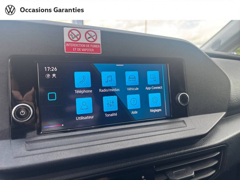 2 spots LED dans compartiment de charge / Allumage automatique des projecteurs, avec éclairage de jour / Ceintures de sécurité 3 points automatiques AV, avec réglage en hauteur des ceintures et rétracteur de ceinture électriques / Jantes en acier 6,5J x 16", en Noir / Levier de vitesses en cuir / Pack Aide à la conduite City Drive / 2 clés pliantes radiocommandées / 2 connexions USB (type C) dans la console centrale AV / Accoudoir pour le siège conducteur / Affichage de la périodicité 30000 km ou 2 ans (variable) / Airbag conducteur et passager (désactivation côté passager) / App-Connect avec fil / Autoradio "Composition" avec écran tactile couleur 20,96 cm (8,25") et 4 HP / Boitiers de rétroviseur extérieur et poignées en Noir, rail de porte coulissante en Argent / Boîte à gants fermée verrouillable et éclairée / Climatiseur à commande manuelle / Cloison de séparation haute sans fenêtre, sans rétroviseur intérieur de sécurité / Combiné d'instruments (km/h), affichages de la vitesse, compteur totalisateur et journalier, régime, niveau de carburant et heure / Console centrale avec 2 porte-boissons universels / Diffuseurs d'air AV en Noir Mat / Dispositif start/stop de mise en veille avec récupération de l'énergie au freinage / Eclairage jour / Enjoliveurs pleins / Fonctionnement intermittent des essuie-glaces avec détecteur de lumière / Frein à disque AR 15" / Frein à main électrique avec Hill assist / Galerie de toit dans la cabine (bac vide-poches dans le ciel de pavillon avec 2 poignées dans la cabine) / Garniture de plancher en moquette dans la cabine / Garniture de tableau de bord Mat / Interface pour téléphone portable / Pare-chocs en gris / Pare-soleil sans miroir, pochette pour ticket côté passager AV et étiquette Airbag sur pare-soleil / Pneus 205/60 R16 96H XL à résistance au roulement optimisée / Porte coulissante tôlée à droite dans le compartiment de charge / Portes battantes sans baies de fenêtre, division asymétrique / Projecteurs doubles halogènes / Préparation barres de toit/galerie porte-bagages / Préparation pour We Connect et We Connect Plus / Revêtement de plancher caoutchouc dans le compartiment de charge / Revêtement de porte et accoudoir en plastique / Revêtement latéral standard dans le compartiment de charge / Roue de secours en acier avec pneu normal avec outillage de bord et cric / Réglage en hauteur du siège conducteur / Réglage manuels des phares / Servotronic : Direction assistée à la vitesse / Signal sonore et lumineux pour ceinture du conducteur non attachée / Système d'appel d'urgence eCall / Verrouillage centralisé avec radiocommande et commande d'ouverture intérieure de porte