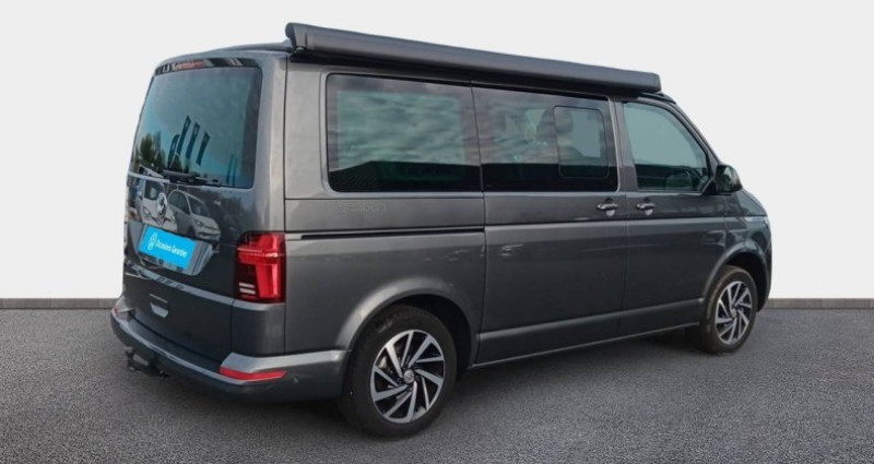 Cylindrée : 1968 cm3 Nb. Vitesse : 7 - Pack Vitrage *** Avec : Double Vitrage isolant dans la cabine + double vitrage (Privacy) dans le compartiment passager *** Avec : Pack acoustique extra *** Avec : Pare-brise en verre feuilleté en double vitrage isolant - Jantes en alliage léger Woodstock 7J x 17 en noir, surface tournée brillante - Dispositif d'attelage, amovible/fermant à clé (y compris système de stabilisation de remorque) - Store avec boîtier et rails noirs - Système d'alarme antivol avec protection volumétrique dans la cabine, Back-up Horn et protection anti-soulèvement - Rallonge de lit avec matelas confort - Pneus toutes saisons 215/60 R17C 109/107T 104H à résistance au roulement super-optimisée - Régulation des feux de route Light Assist - 4 jantes acier 7Jx17 - Aide à la fermeture pour le hayon - Aide électrique à la fermeture pour porte coulissante droite - Blocs de feux AR à LED, Rouge - Climatisation Climatronic avec 2è évap., 2e chauf., pavillon climatisé et commande supplémentaire dans le compartiment passagers - Correcteur électronique de trajectoire ESP avec aide au freinage d'urgence AFU système antiblocage des freins ABS, système de stabilisation de la remorque, système anti-patinage ASR, régulateur de couple d'inertie moteur MSR - Eclairage de jour avec allumage automatique des projecteurs, fonction Leaving Home et fonction Coming Home manuelle - Hayon avec baie de fenêtre et aide à la fermeture - Jantes en acier 7Jx17 - Pack Lumière et Visibilité - Porte coulissante à droite, dans le compartiment passagers/charge avec aide à la fermeture électr. - Projecteurs à LED avec éclairage de jour LED et bloc de feux AR à LED - Préparation pour dispositif d'attelage (y compris système de stabilisation de remorque) - Régulateur automatique de distance ACC jusqu'à 210 km/ h et système de surveillance périmétrique Front Assist avec fonction freinage d'urgence en ville - Système de navigation Discover Media Pro y compris Streaming & Internet - Volant cuir multifonction 3 branches - 2 batteries supplémentaires, sans entretien, (1 batterie supplémentaire avec relais de coupure) - 2 clés pliantes de radiocommande pour le système de fermeture avec télécommande - 2 connexions USB (type C) dans le tableau de bord - 2e batterie (75 Ah, AGM) avec relais de coupure et surveillance de la batterie - 6 haut-parleurs : 2 haut-parleurs d'aigus, 2 haut-parleurs de graves. 2 haut-parleurs à large spectre - Accoudoir pour les 2 sièges dans la cabine - Affichage multifonction Plus avec écran noir-blanc - Airbags frontaux pour conducteur et passager, rétracteurs à gauche et à droite et désactivation de l'airbag du passager - Airbags latéraux et airbags de tête conducteur et passager AV - Alimentation 230 V avec fonction de charge pour batteries de véhicule ainsi que prise 230 V dans l'habitacle - Ancrage pour siège-enfant ISOFIX et Top Tether - Antidémarrage électronique - App-Connect avec et sans fil - Appuie-tête (réglables en hauteur à l'AV et en hauteur et en inclinaison à l'AR) - Appuis lombaires réglables manuellement pour sièges individuels AV (non réglable en hauteur) - Armoire en placage Graphite Grey avec raccord pour douche extérieure - Assistant aux manoeuvres Park Assist avec ParkPilot AV et AR avec protection latérale active - Assistant de démarrage en côte - Assistant de vent latéral Side Wind Assist - Avertisseur sonore 1 ton - Banquette/couchette 2 places, coulissante et rabattable en 2 couchages, dans la 3ème rangée de siège - Batterie standard et alternateur plus puissant - Boitiers rétroviseurs extérieurs et poignées porte dans teinte véhicule - Boîte à gants éclairée - Caches d'obscuration en tissu pour la cabine - Caméra de recul Rear view (lignes statiques) - Car-Net App-Connect - Charnières pour portes AR/hayon en version normale - Chauffage d'appoint dans le compartiment passagers, chauffage (à régulation mécanique) dans la cabine - Chauffage de siège pour les sièges de la cabine, à gauche et à droite réglables séparément - Chauffage stationnaire à air, programmable, avec radiocommande et réchauffeur additionnel - Combiné d'instruments (km/h); affichages de vitesse, compteur total./journalier, régime, niveau carburant, heure - Contrôle de pression des pneus - Digital Cockpit et détecteur de fatigue - Direction assistée électromécanique avec colonne de direction de sécurité réglable en hauteur et en profondeur - Dispositif start/stop de mise en veille avec récupération de l'énergie au freinage - Eclairage du marche-pieds avec inscription California - Eclairage du marchepied, sur les portes dans la cabine et les porte(s) coulissante(s) dans l'espace passagers - Extension de garantie 2 ans, kilométrage maximal 120 000 kms - Fenêtre coulissante à l'AV et fenêtre fixe à l'AR dans le compartiment de charge/passager à gauche - Fenêtres latérales dans le compartiment passagers/charge, à droite - Fermeture du hayon sans fonction de déverrouillage de l'intérieur - Feux antibrouillard AR - Frigo à compresseur «Waeco» (environ 42 l), * classification selon DIN EN 62552 - Garniture de plancher en feutre velours (moquette) dans la cabine - Garnitures de siège en tissu, dessin Circuit - Gicleurs dégivrants à l'AV et indicateur de niveau du liquide de lave-glace - Glace coulissante avec moustiquaire à l'AV et fenêtre fixe à l'AR, dans le compartiment de charge/passagers, à gauche et à droite - Glaces latérales dans la cabine en verre athermique, glaces latérales assombries à double vitrage dans compartiment passager - Grille de calandre, peinte en Noir, avec 5 baguettes chromées, baguette chromée au bas de la grille de calandre - Inserts décoratifs Pewter Wave Grey - Interface pour téléphone mobile Comfort avec fonction de charge inductive - Kitchenette (sur le panneau latéral entre montants B et C) avec réchaud à gaz 1 feu avec allumage pié