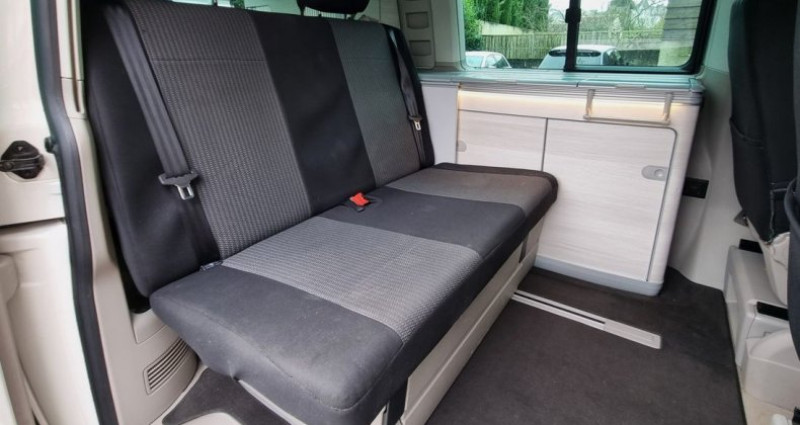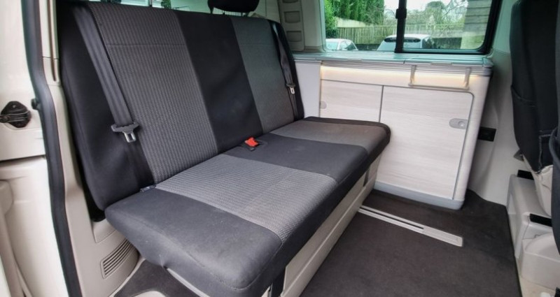 VOLKSWAGEN T6 CALIFORNIA 2.0 TDI 150CV ORIGINS, BLANC , 7 cv, 4 places, mise en circulation le 25/04/2019 Garantie possible 12-24-36 ou 48 mois OPTIONS ET EQUIPEMENTS : Extérieur et sécurité : - Feux anti brouillard AV - Détecteur de pluie - Allumage des phares automatiques - rétroviseurs électriques et dégivrants - Radar de stationnement Arrière - Caméra de recul - Régulateur/limiteur de vitesse - Boite manuelle 6 rapports - Vitre ouvrante côté gauche - Prise pour alimentation - Toit relevable manuellement - Store banne permanent - Bloc de vitre arrière teinté foncé INTERIEUR ET CONFORT : - Fermeture centralisée - Sièges passager et conducteur AV pivotant - banquette arrière 2 places avec position couchage - Sièges AV et banquette avec housse de protection - system ISOFIX - ordinateur de bord avec écran tactile - GPS couleur tactile - R-link avec AppleCar et androïdAuto - Bluetooth pour Tel et média - Chauffage stationnaire à air, programmable avec radiocommande - Climatisation - Réfrigérateur 42 L - Réservoir Eau propre 30 L- Réservoir Eaux usées 30 L - douchette extérieur - Table de camping pour l'intérieur et l'extérieur et 2 chaises pliantes - Cuisine avec évier et gazinière - Vidange pour les eaux usées - prise 220V , USB , auxiliaire, carte SD VEHICULE VISIBLE UNIQUEMENT SUR RENDEZ-VOUS MEYER JB AUTOMOBILE 34 Boulevard d’Italie 85000 LA ROCHE SUR YON