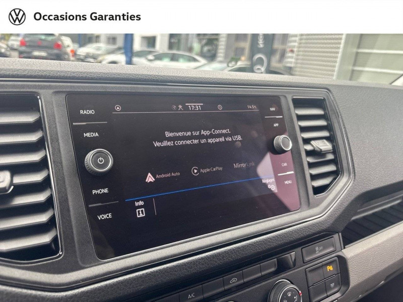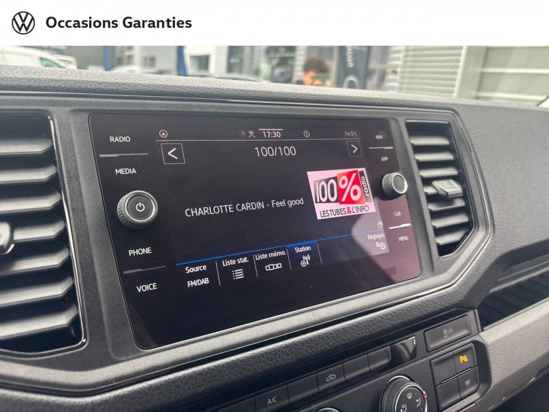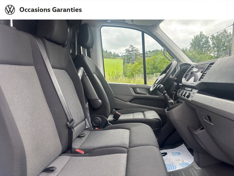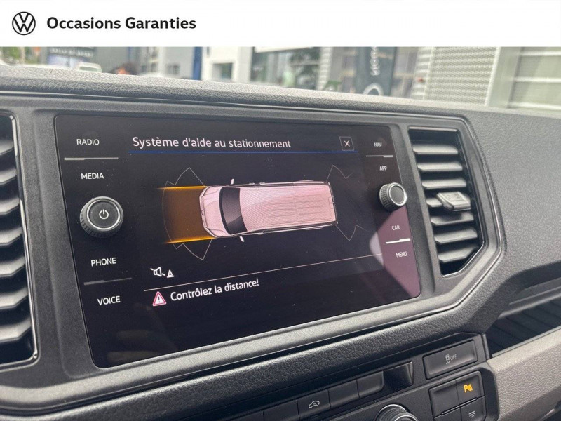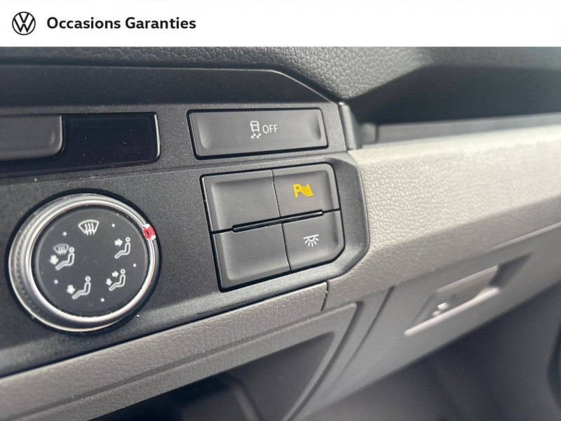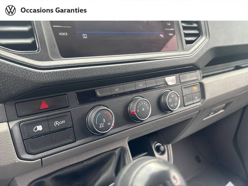 4 jantes en acier 6 1/2 J x 16 avec charge de 1050 kg, en argent / Ceintures de sécurité 3 points automatiques avec réglage hauteur ceinture AV et rétracteurs de ceinture électriques / Climatisation "Climatic" mono zone avec réglage manuel / Eclairage dans le compartiment de charge : 4 spots à LED / Rétroviseur extérieur à droite, convexe, avec clignotant à LED intégré et zone grand angle / Rétroviseur extérieur à gauche, convexe, avec clignotant à LED intégré et zone grand angle / Système d'aide au maintien de la trajectoire en cas de vent latéral (Side Wind Assist) / 2 clés pliantes radiocommandées / Affichage multifonction plus / Airbag conducteur et passager (désactivation côté passager) / Alternateur triphasé 140 A / Banquette double pour 2 passagers avec grand espace de rangement sous les assises relevables séparément, d'une table au dos de la place du milieu (rabattable) avec porte-gobelet et porte-stylo / Batterie 420 A (70 Ah) / Boîte à gants (éclairée) avec volet fermant à clé / Cloison de séparation pleine / Combiné d'instruments (km/h), affichages de la vitesse, compteur totalisateur, régime, niveau de carburant et heure / Commande vocale / Eclairage de jour / Freins à disque AV 16" / Garniture de plancher dans la cabine en caoutchouc / Glaces latérales en verre athermique / Hauteur de toit H3 couleur carrosserie / Marchepied à l'entrée de l'espace de chargement, à AR / Mesures d'insonorisation de l'intérieur Plus / Oeillets d'arrimage pour fixation de la charge / Outillage de bord avec cric / Pare-chocs AV dans la couleur de la carrosserie en partie haute / Park Pilot AV/AR / Paroi complète parfaitement verticale / Poids Total Admissible 3 500 kg / Poignée sur la paroi dans le compartiment de charge / Poignées d'accès sur les montants AR / Porte coulissante à droite dans le compartiment de charge/passager / Portes AR à vantaux sans baies de fenêtre / Prise 12 V et 4 porte-gobelets dans le tableau de bord / Protection centrale de roue / Protection latérales de la carrosserie contre les petits chocs du quotidien / Préparation We Connect et We Connect Plus / Radio Composition Media avec écran tactile 8 pouces, 4 haut-parleurs et interface pour téléphone portable / Roue de secours avec cric et outil de démontage de roue / Réservoir 75 litres / Réservoir de carburant avec volume de réservoir de 75 l / Siège suspendu "ErgoComfort" à gauche, dans la 1ère rangée de sièges (réglage de la longueur, de la hauteur et de l'inclinaison de l'assise, du soutien lombaire et accoudoirs des deux côtés) / Système d'appel d'urgence e-Call / Système de contrôle électronique de la trajectoire (ESP) et système d'antiblocage des freins (ABS) / Système Start/Stop avec récupération d'énergie de freinage / Verrouillage central avec radiocommande et commande intérieure / Vibreur et témoin d'alerte pour ceinture du conducteur et du passager AV non attachée / Vide poche en partie centrale du tableau de bord avec espaces de rangement en partie haute