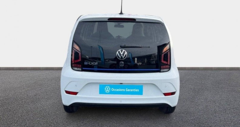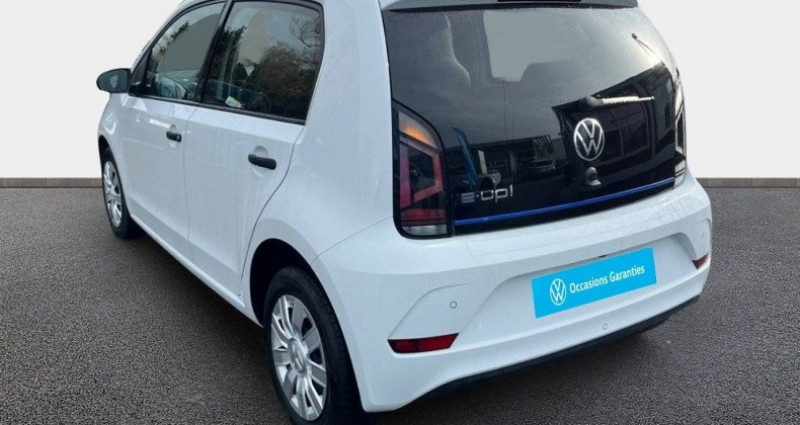 Nb. Vitesse : 1 - 4 jantes acier 5Jx14 avec enjoliveurs spécifiques et pneus 165/70 R14 - Climatisation automatique Climatronic - Correcteur électronique de trajectoire ESP, amplificateur de freinage d'urgence, système d'antiblocage de roues ABS, antipatinage électronique ASR, régulateur électronique de couple MSR et aide au démarrage en côte Hill Hold - Feux de circulation de jour à LED en C (inactifs lorsque les feux du véhicule sont activés) - Pack Chrome Intérieur - Phares halogène et feux de jour à LED - Poignée de frein à main en cuir - Pommeau du levier de vitesse cuir - Volant cuir multifonctions 3 branches réglable en hauteur - 2 haut-parleurs - 5 portes - Affichage multifonctions Plus - Alerte de perte de pression des pneus - Antenne AR de pavillon - Application Volkswagen Maps+More - Appuis-tête intégrés dans les dossiers à l' AV - Appus-tête (2) et ceintures de sécurité à 3 points (2) sur la banquette AR - Avertisseur sonore - Bacs de rangement dans les portes avec porte-boisson pour bouteilles de 1 Litre à l'AV - Baguette AV bleue entre les projecteurs - Banquette 2 places AR monobloc - Boitiers des rétroviseurs extérieurs Noirs - Boîte à gants - Cache-bagages - Carte de recharge Volkswagen e-Pass avec 1 an d'abonnement et 50 ? de crédit offerts - Ceintures de sécurité AV 3 points à enrouleur avec prétensionneur - Clignotants confort (1 impulsion = 3 clignotements) - Clignotants latéraux intégrés dans les rétroviseurs extérieurs - Console centrale avec 1 porte-boissons à l'AV et 1 à l'AR - Câble de recharge (32A) pour borne domestique ?wallbox' ou borne publique compatible (7,4kW) (mode 3, type 2) - Câble de recharge (8A) pour prise de courant domestique (1,8 kW) (mode 2, type 2) - Direction assistée électromécanique asservie à la vitesse - Disques de frein ventilés à l'AV - Dossier de banquette AR asymétrique et rabattable 60/40 - Double Airbag frontal a l'AV - Possibilité de désactiver l'Airbag passager AV - Double airbag latéral et de tête à l'AV et Airbag de tête AR - Eclairage du coffre à bagages - Essuie-glace AR et lave glace - Essuie-glace AV avec commande d' intermitence et lave-glace - Feux de brouillard AR - Générateur de son e-sound non désactivable - Kit de dépannage en cas de crevaison (compresseur 12V et produit d'étanchéité de pneu) - Lane Assist: avertisseur de franchissement de ligne - Logo e-Up ! sur les portes AV et la malle AR - Miroir de courtoisie dans le pare-soleil du passager AV - Oeillets d'arrimage ISOFIX (dispositif pour fixation de 2 sièges-enfants sur la banquette AR) - Ordinateur de bord - Outillage de bord - Pare-brise en verre athermique - Pare-chocs peint dans la couleur de la carrosserie - Pare-soleil conducteur et passager AV - Plafonnier à temporisation à l'AV avec contacteur de portière - Planche de bord spécifique Black Cube - Plancher de coffre à bagages - Poignées de portes extérieures noires - Prise de recharge compatible AC (type 2) / DC (CCS : Combined Charging System) - Préparation pour e-Remote durée 1 an - Radio Composition Phone avec port USB - Reconnaissance de l'écriture manuscrite / coaching de conduite Think Blue Trainer - Réception de radio numérique DAB+ (Digital Audio Broadcasting) - Rétroviseurs extérieurs réglables de l'intérieur - Signal d'avertissement acoustique et optique pour ceinture de sécurité conducteur non attachée AV/AR - Siège conducteur réglable en hauteur - Smartphone intégration - Système de récupération de l'énergie en décélération (5 modes de récupétion et 3 profils de conduite normal/eco/eco+), pneumatiques à faible résistance au roulement - Tapis de sol AV/AR - Troisième Feu stop blanc surélevé - Verrouillage centralisé à distance avec télécommande - Vitres athermiques teintées vertes - Vitres électriques AV (entrebâillantes AR)