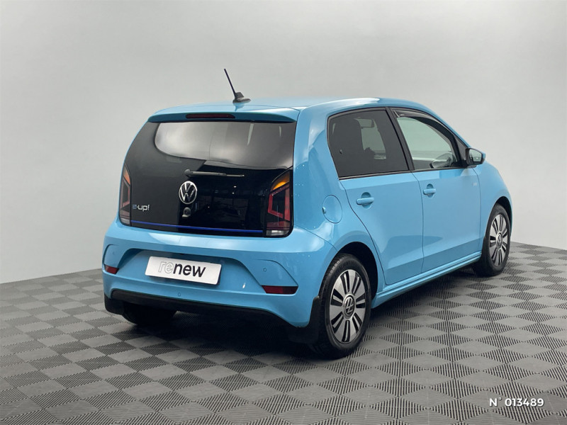 Clignotants latéraux intégrés dans les rétroviseurs extérieurs / Antenne AR de pavillon / Vitres athermiques teintées vertes / 2 haut-parleurs / Disques de frein ventilés à l'AV / Lane Assist: Assistant de maintien dans la voie / Câble de recharge pour prise de courant domestique (1,8 kW) (mode 2, type 2) / Double Airbag frontal a l'AV - Possibilité de désactiver l'Airbag passager AV / 4 jantes acier 5Jx14" avec enjoliveurs intégraux et pneus 165/70 R14 / Clignotants confort (1 impulsion = 3 clignotements) / Tapis de sol AV et AR / Boîte à gants avec couvercle / Poignées de frein à main gainée de cuir / Double airbag latéral et de tête à l'AV / Pack Chrome Intérieur / Kit de dépannage en cas de crevaison (compresseur 12V et produit d'étanchéité de pneu) / Outillage de bord / Signal d'avertissement acoustique et optique pour ceinture de sécurité conducteur non attachée / Boitiers des rétroviseurs extérieurs Noirs / Bacs de rangement dans les portes avec porte-boisson pour bouteilles de 1 Litre à l'AV / Dossier de banquette AR asymétrique et rabattable 60/40 / Console centrale avec 1 porte-boissons à l'AV et 1 à l'AR / Direction assistée électromécanique asservie à la vitesse / Avertisseur sonore 2 tons / Oeillets d'arrimage ISOFIX (dispositif pour fixation de 2 sièges-enfants sur la banquette AR) / Système de récupération de l'énergie en décélération (4 modes de récupétion et 3 profils de conduite "normal/eco/eco+"), pneumatiques à faible résistance au roulement / Logo "e-Up !" sur les portes AV et la malle AR / Prise de recharge compatible AC (type 2) / DC (CCS : Combined Charging System) / Banquette 2 places AR monobloc / Câble de recharge pour prise de courant domestique (2,3 kW) (mode 2, type 2) / Service Online "Car-Net": 12 mois offerts, renouvellement payant / Vitres électriques AV (entrebâillantes AR) / Eclairage du coffre à bagages / Plafonnier à temporisation à l'AV avec contacteur de portière / Hill-Hold : Assistant au démarrage en côte grâce à une fonction anti-recul / Câble de recharge pour borne domestique Wallbox ou borne publique compatible (3,6 kW) (mode 3, type 2/type 2) / Carte de recharge Volkswagen e-Pass avec 1 an d'abonnement et 50 de crédit offerts / Cache-bagages / Reconnaissance de l'écriture manuscrite / coaching de conduite "Think Blue Trainer" / Correcteur électronique de trajectoire ESP avec aide au démarage en côte, amplificateur de freinage d'urgence, système d'antiblocage des roues ABS, antipatinage électronique ASR et régulateur électronique de couple MSR / Appus-tête (2) et ceintures de sécuritéà 3 points (2) sur la banquette AR / Appuis-tête intégrés dans les dossiers à l' AV / Feux de circulation de jour à LED en "C" (inactifs lorsque les feux du véhicule sont activés) / Troisième Feu stop blanc surélevé / Baguette AV bleue entre les projecteurs / Pare-chocs peint dans la couleur de la carrosserie / Phares halogène et feux de jour à LED / Essuie-glace AV avec commande d' intermitence et lave-glace / Volant cuir multifonctions 3 branches réglable en hauteur / Radio "Composition Phone" avec port USB / Générateur de son / Smartphone intégration / Application Volkswagen "Maps+More" / Airbag de tete a l'AR / Planche de bord spécifique "Black Cube" / Sellerie en tissu "Fushion" / Plancher de coffre à bagages / Câble de recharge pour borne domestique Wallbox ou borne publique compatible (7.4kW) (mode 3, type3 / type 2) / Service Online "We Connect": 12 mois offerts, renouvellement payant / Avertisseur sonore / Double airbag latéral et de tête à l'AV et Airbag de tête AR / Poignée de frein à main en cuir / Poignées de portes extérieures noires / Pommeau de levier de vitesse cuir / Affichage multifonctions Plus
