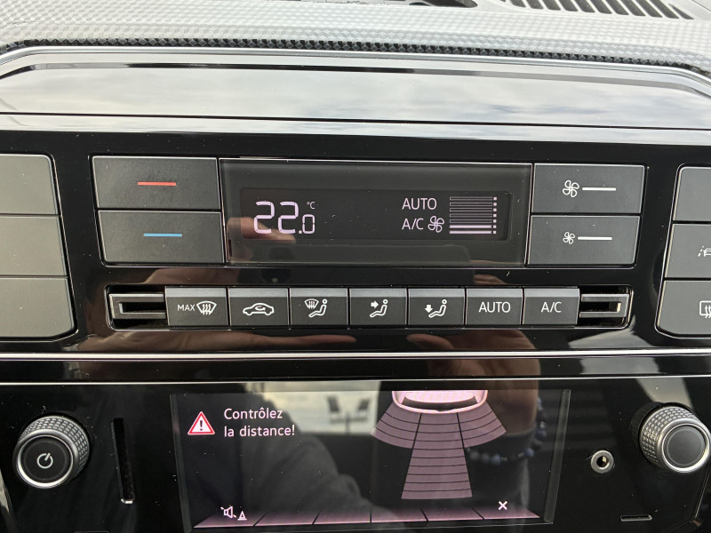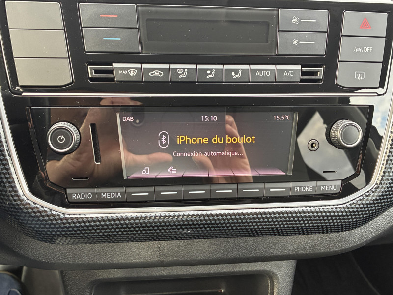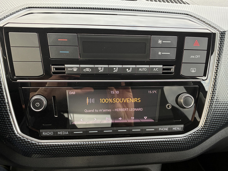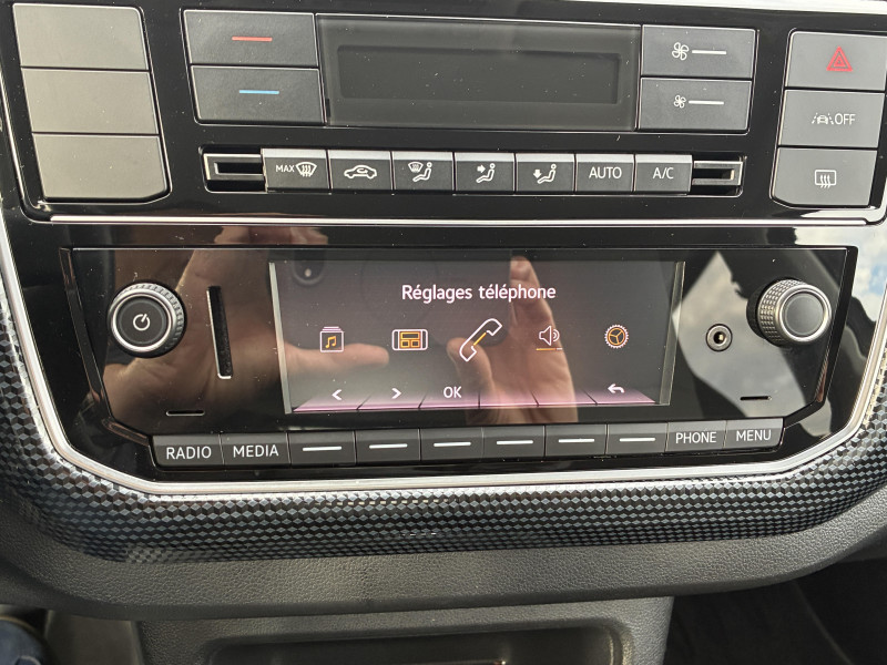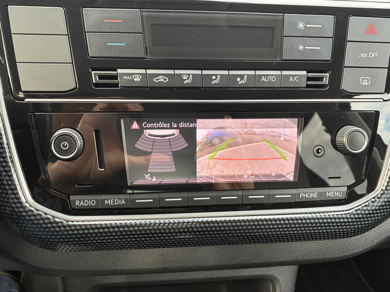 4 jantes alliage léger "Blade" 5Jx15" et pneus 165/65 R15 / Allumage automatique des feux avec fonctions "Coming Home - Leaving Home" / Caméra de recul avec visualisation de la zone située à l'AR du véhicule sur l'écran de la radionavigation / Correcteur électronique de trajectoire ESP, amplificateur de freinage d'urgence, système d'antiblocage de roues ABS, antipatinage électronique ASR, régulateur électronique de couple MSR et aide au démarrage en côte "Hill Hold" / Feux de circulation de jour à LED en "C" (inactifs lorsque les feux du véhicule sont activés) / Park Pilot, aide au stationnement AR avec signaux d?avertissement acoustiques en cas d?obstacles / Phares halogènes et feux de jour à LED en 'C' / Poignée de frein à main en cuir / Pommeau du levier de vitesse cuir / Volant cuir multifonctions 3 branches réglable en hauteur / 2 accroche-sacs dans le coffre / 2 haut-parleurs / Affichage multifonctions Plus / Antenne AR de pavillon / Application Volkswagen "Maps+More" / Appuis-tête intégrés dans les dossiers à l' AV / Appus-tête (2) et ceintures de sécuritéà 3 points (2) sur la banquette AR / Avertisseur sonore / Bacs de rangement dans les portes avec porte-boisson pour bouteilles de 1 Litre à l'AV / Baguette AV bleue entre les projecteurs / Banquette 2 places AR monobloc / Boitiers de rétroviseurs extérieurs et poignées de portes dans la couleur carrosserie / Cache-bagages / Carte de recharge Volkswagen e-Pass avec 1 an d?abonnement et 50 ? de crédit offerts / Clignotants confort (1 impulsion = 3 clignotements) / Clignotants latéraux intégrés dans les rétroviseurs extérieurs / Console centrale avec 1 porte-boissons à l'AV et 1 à l'AR / Câble de recharge (32A) pour borne domestique ?wallbox? ou borne publique compatible (7,4kW) (mode 3, type 2) / Câble de recharge (8A) pour prise de courant domestique (1,8 kW) (mode 2, type 2) / Direction assistée électromécanique asservie à la vitesse / Disques de frein ventilés à l'AV / Dossier de banquette AR asymétrique et rabattable 60/40 / Double Airbag frontal a l'AV - Possibilité de désactiver l'Airbag passager AV / Double airbag latéral et de tête à l'AV et Airbag de tête AR / Double plancher de coffre à bagages, amovible / Eclairage du coffre à bagages / Essuie-glace AV avec commande d' intermitence et lave-glace / Générateur de son e-sound non désactivable / Kit de dépannage en cas de crevaison (compresseur 12V et produit d'étanchéité de pneu) / Logo "e-Up !" sur les portes AV et la malle AR / Oeillets d'arrimage ISOFIX (dispositif pour fixation de 2 sièges-enfants sur la banquette AR) / Outillage de bord / Pare-chocs peint dans la couleur de la carrosserie / Plafonnier à temporisation à l'AV avec contacteur de portière / Plancher de coffre à bagages / Poignées de porte noires / Prise de recharge compatible AC (type 2) / DC (CCS : Combined Charging System) / Préparation pour "e-Remote" durée 1 an / Radio "Composition Phone" avec port USB / Reconnaissance de l?écriture manuscrite / coaching de conduite "Think Blue Trainer" / Signal d'avertissement acoustique et optique pour ceinture de sécurité conducteur non attachée AV/AR / Smartphone intégration / Système de récupération de l'énergie en décélération (5 modes de récupétion et 3 profils de conduite "normal/eco/eco+"), pneumatiques à faible résistance au roulement / Tableau de bord noir Black Cube / Tapis de sol AV/AR / Troisième Feu stop blanc surélevé / Vitres électriques AV (entrebâillantes AR)